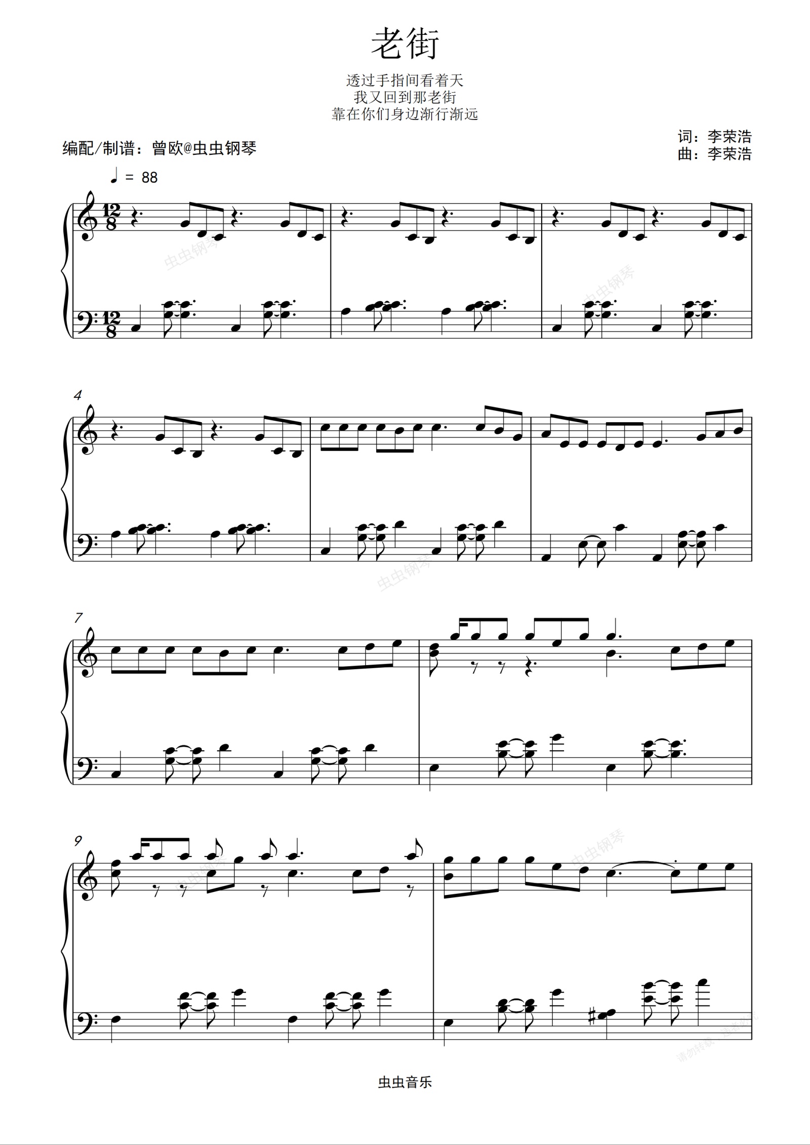 老街 - 李荣浩【C调免费易弹】温暖怀旧的琴声响起,我仿佛又走回了那条老街