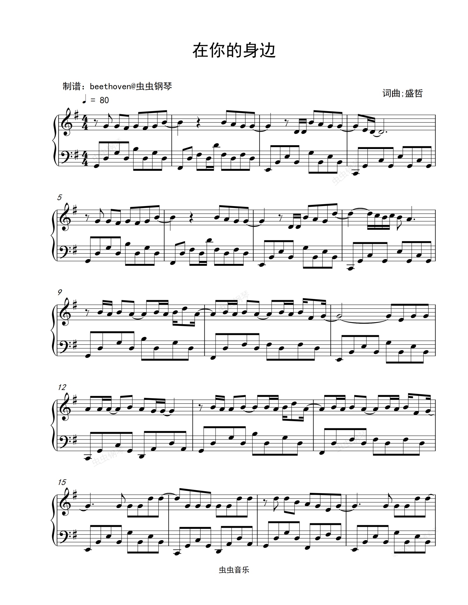 钢琴谱:在你的身边-盛哲-简单版