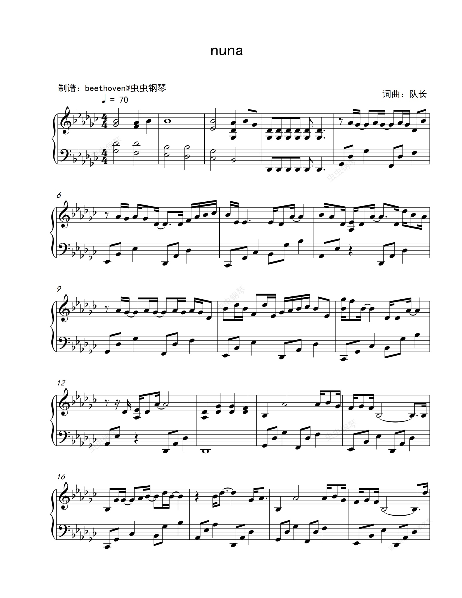 钢琴谱:nuna-队长