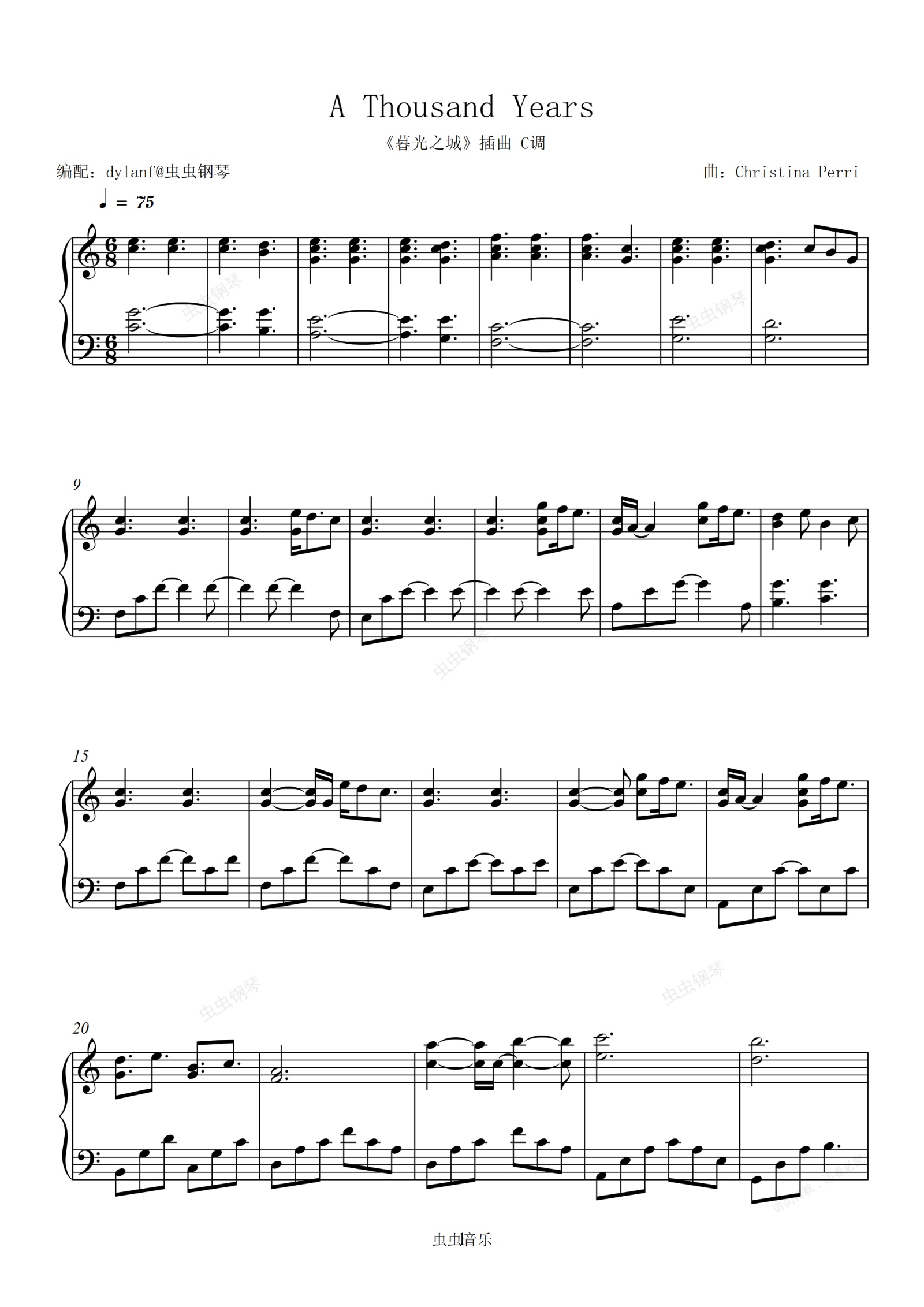 钢琴谱:C调易弹A Thousand Years《暮光之城》插曲 主题曲 Christina Perri 一千年