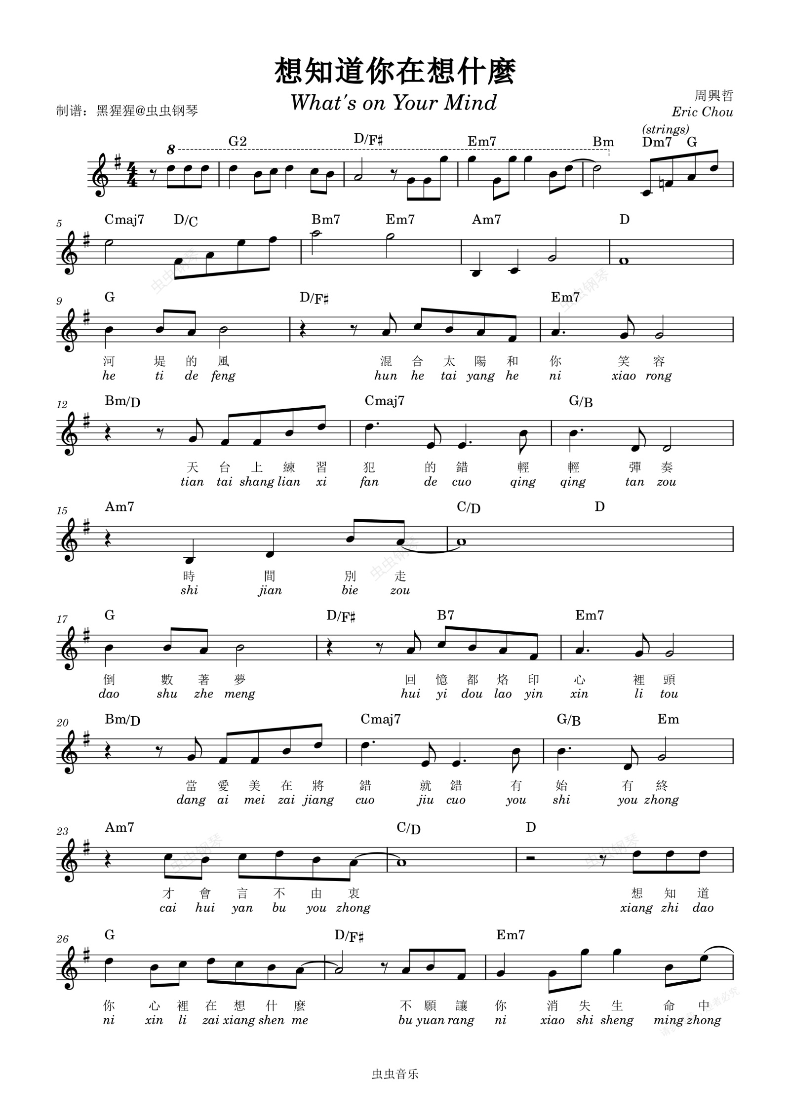 钢琴谱:周兴哲-G调 《想知道你在想什么》