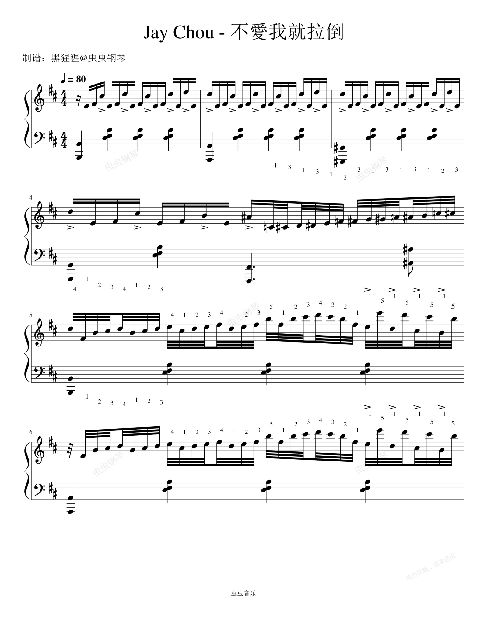 钢琴谱:周杰伦-D调 《不爱我就拉倒》