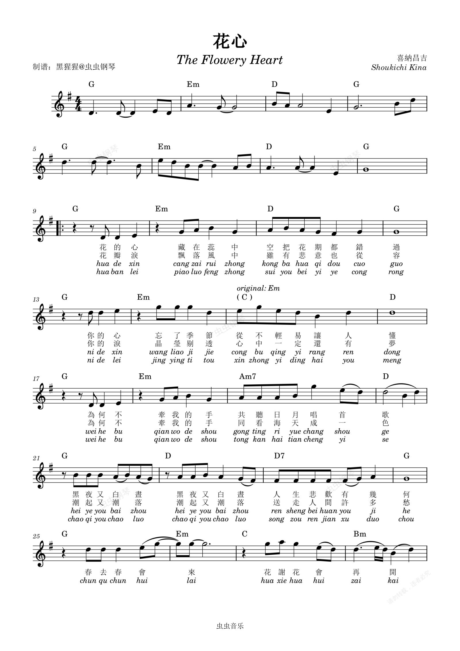 钢琴谱:周华健-G调 《花心》