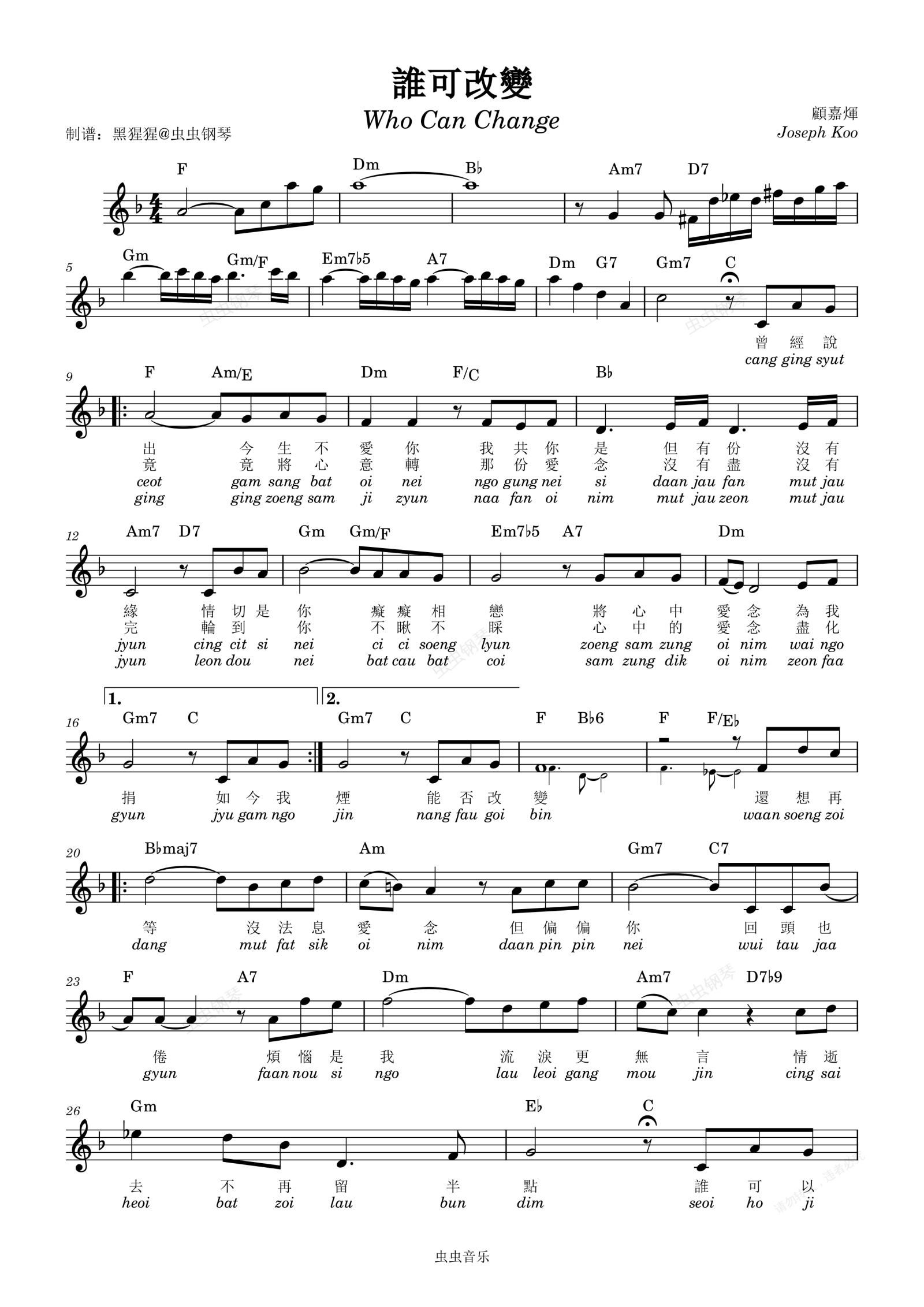钢琴谱:谭咏麟-F调 《谁可改变》