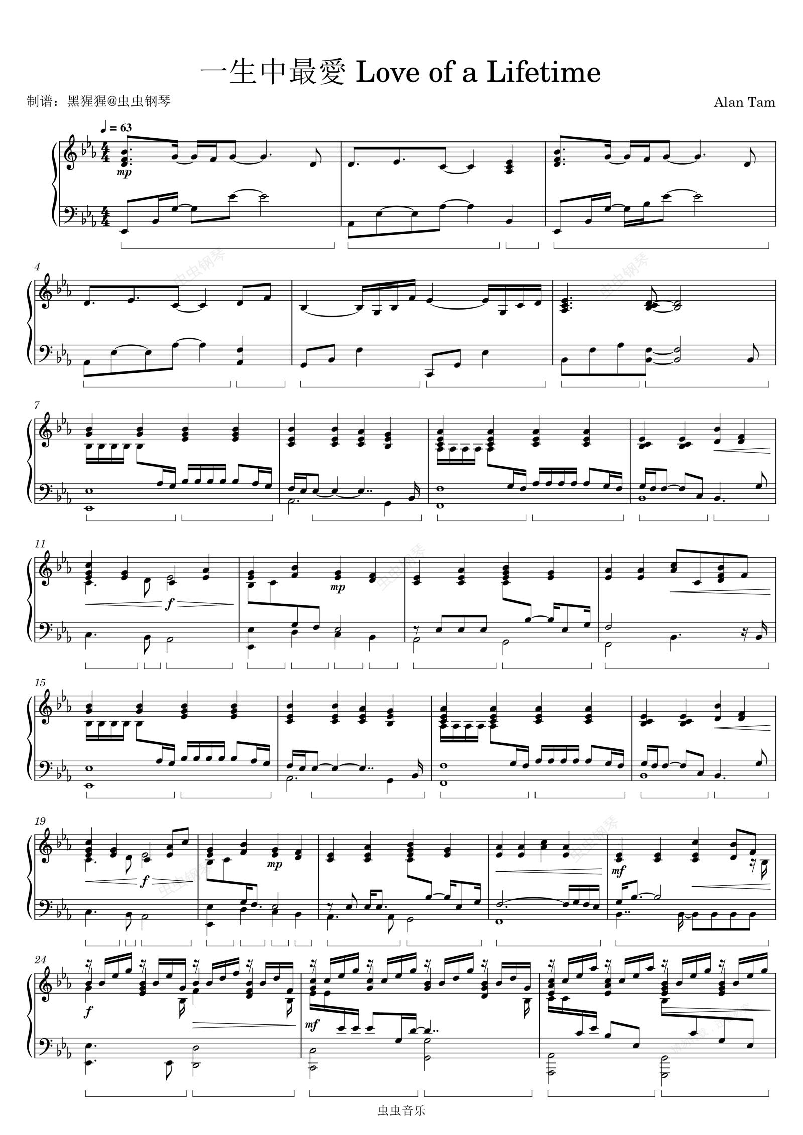 钢琴谱:谭咏麟-Eb调 《一生中最爱》