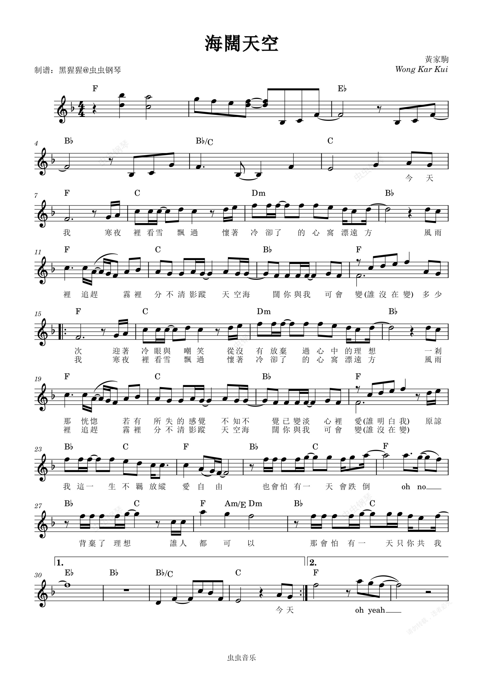 钢琴谱:Beyond-F调 《海阔天空 》