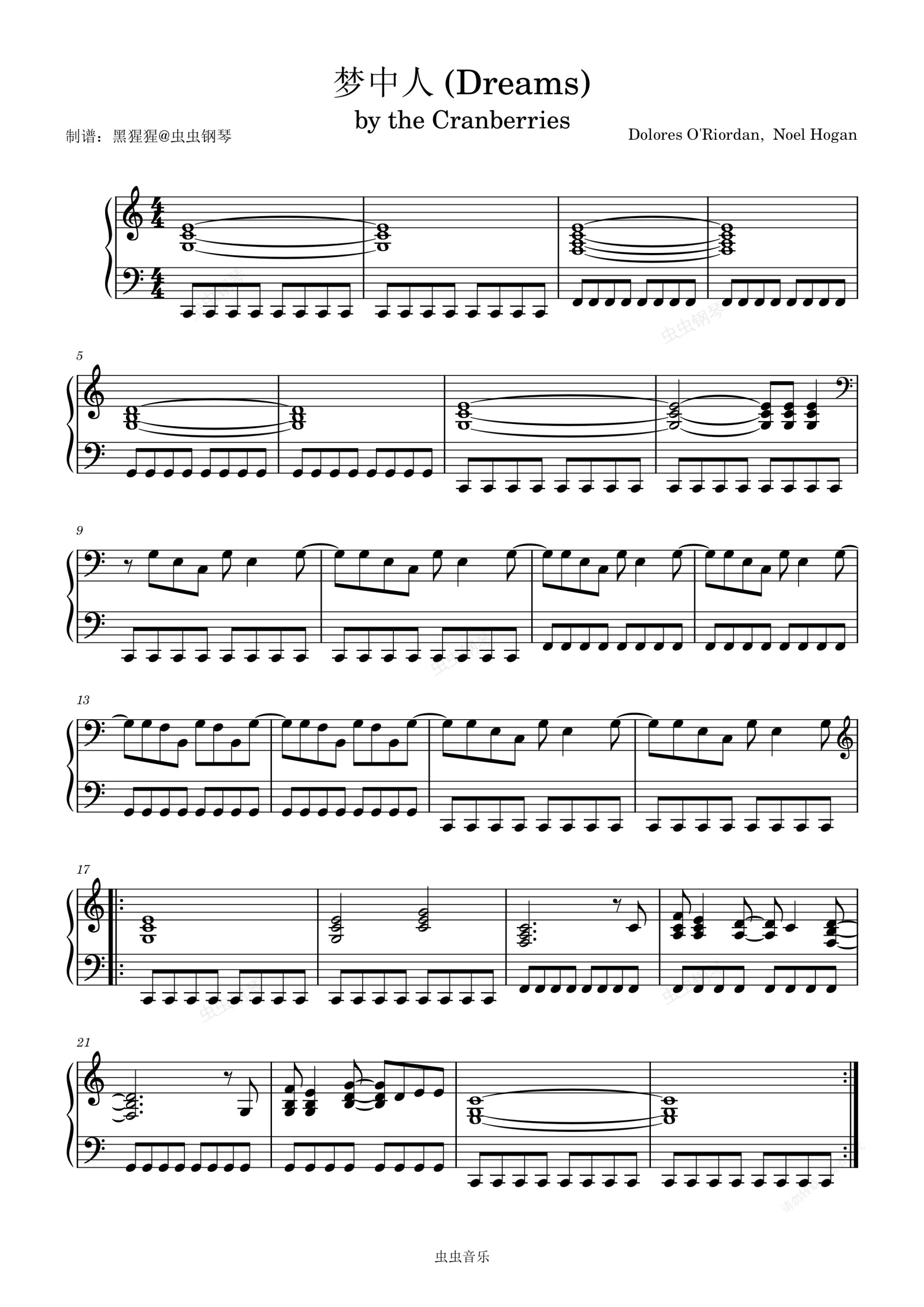 钢琴谱:王菲-C调 《梦中人》