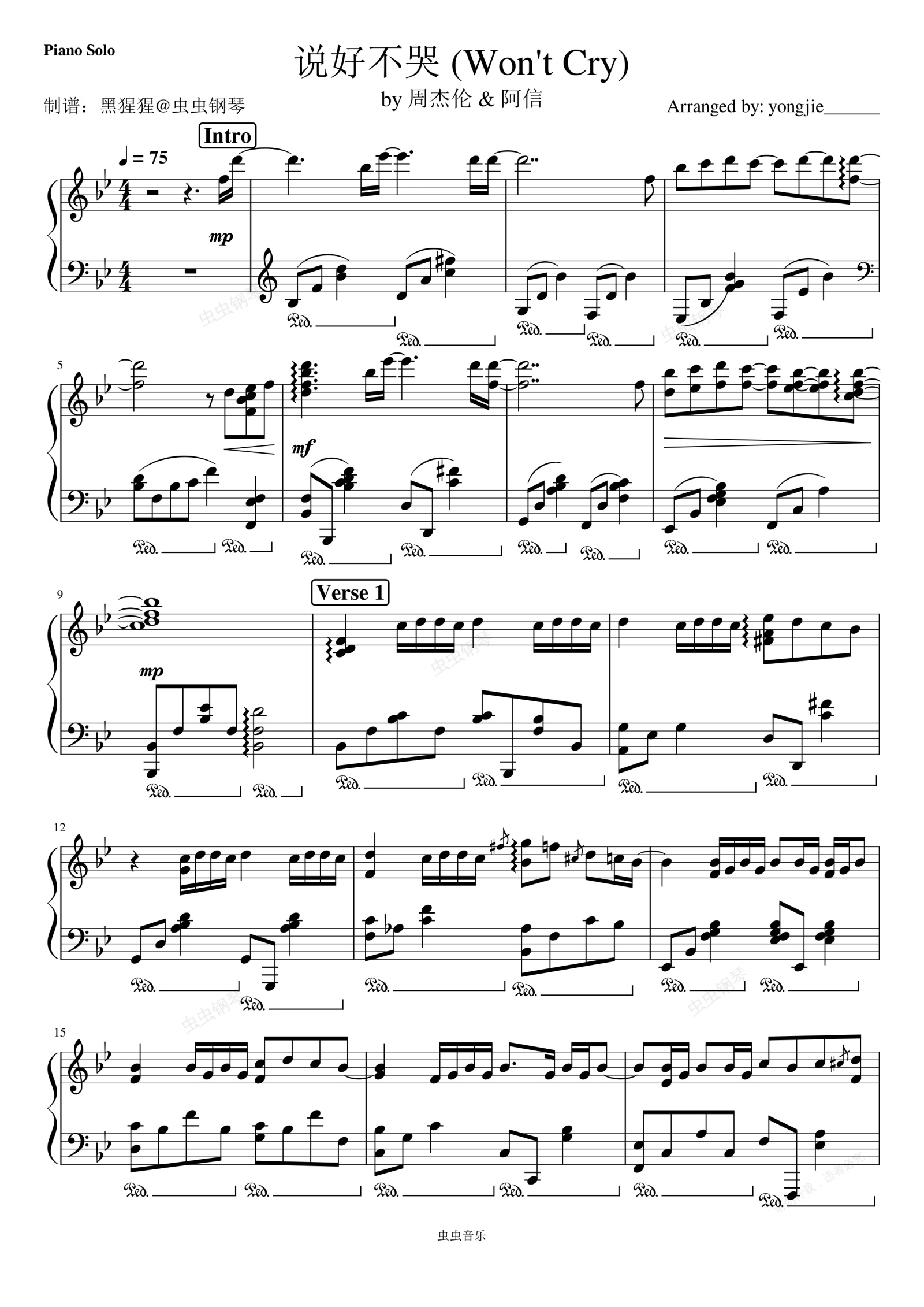 钢琴谱:周杰伦 (Jay Chou)、阿信 (Ashin)-Bb调 《说好不哭》