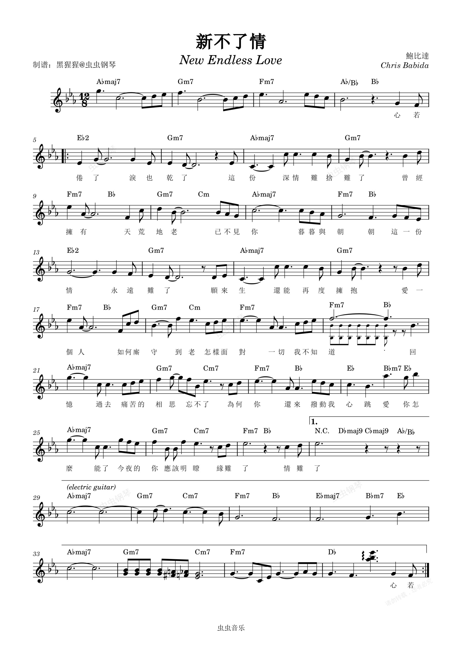 钢琴谱:萧敬腾-Eb调 《新不了情》