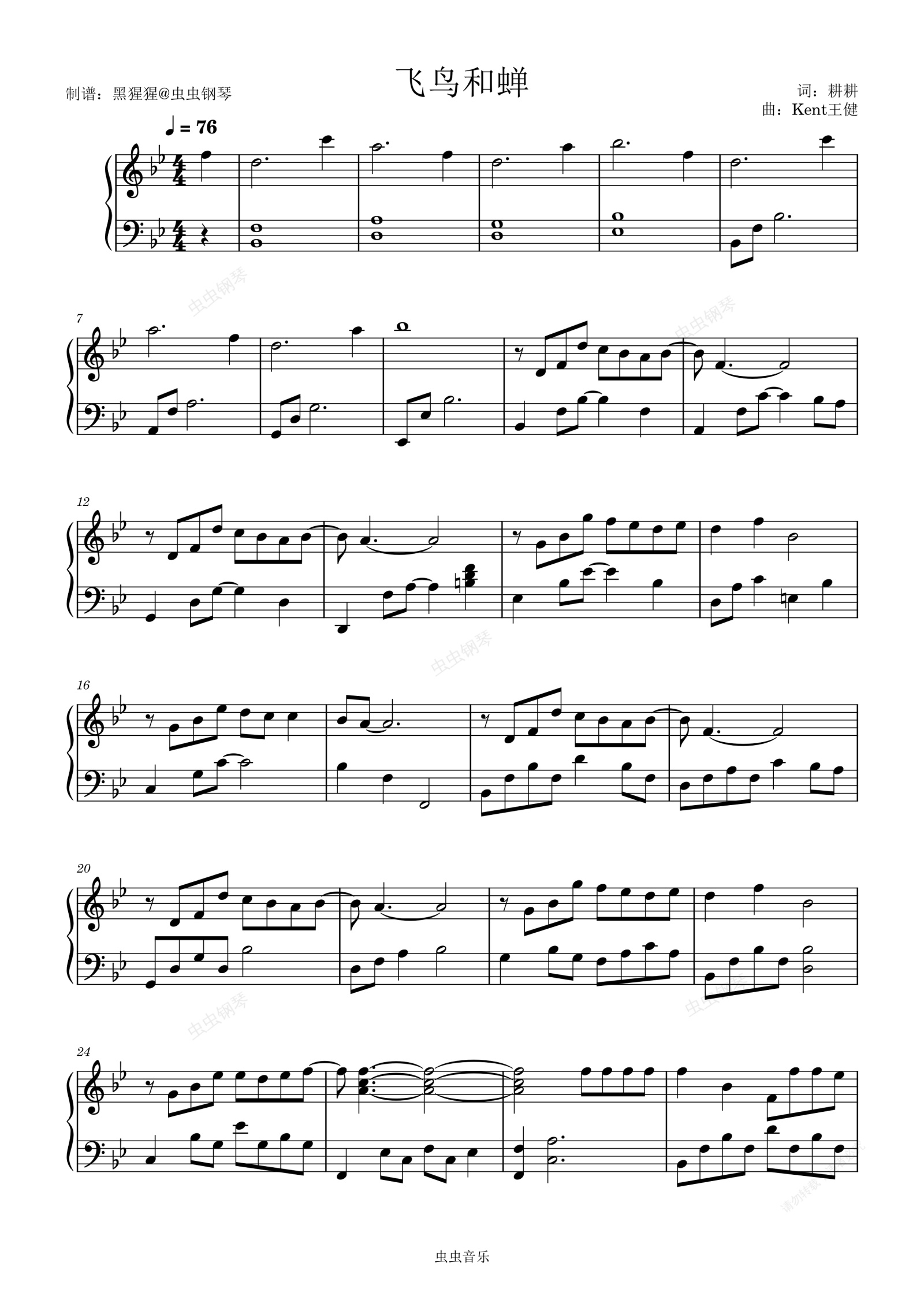 钢琴谱:任然-Bb调 《飞鸟和蝉》