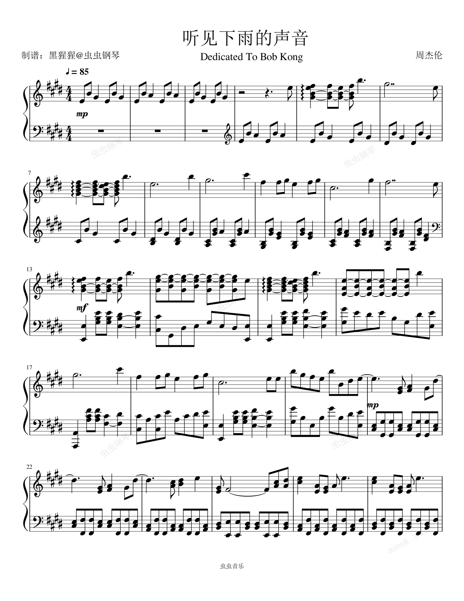 钢琴谱:周杰伦-E调 《听见下雨的声音》