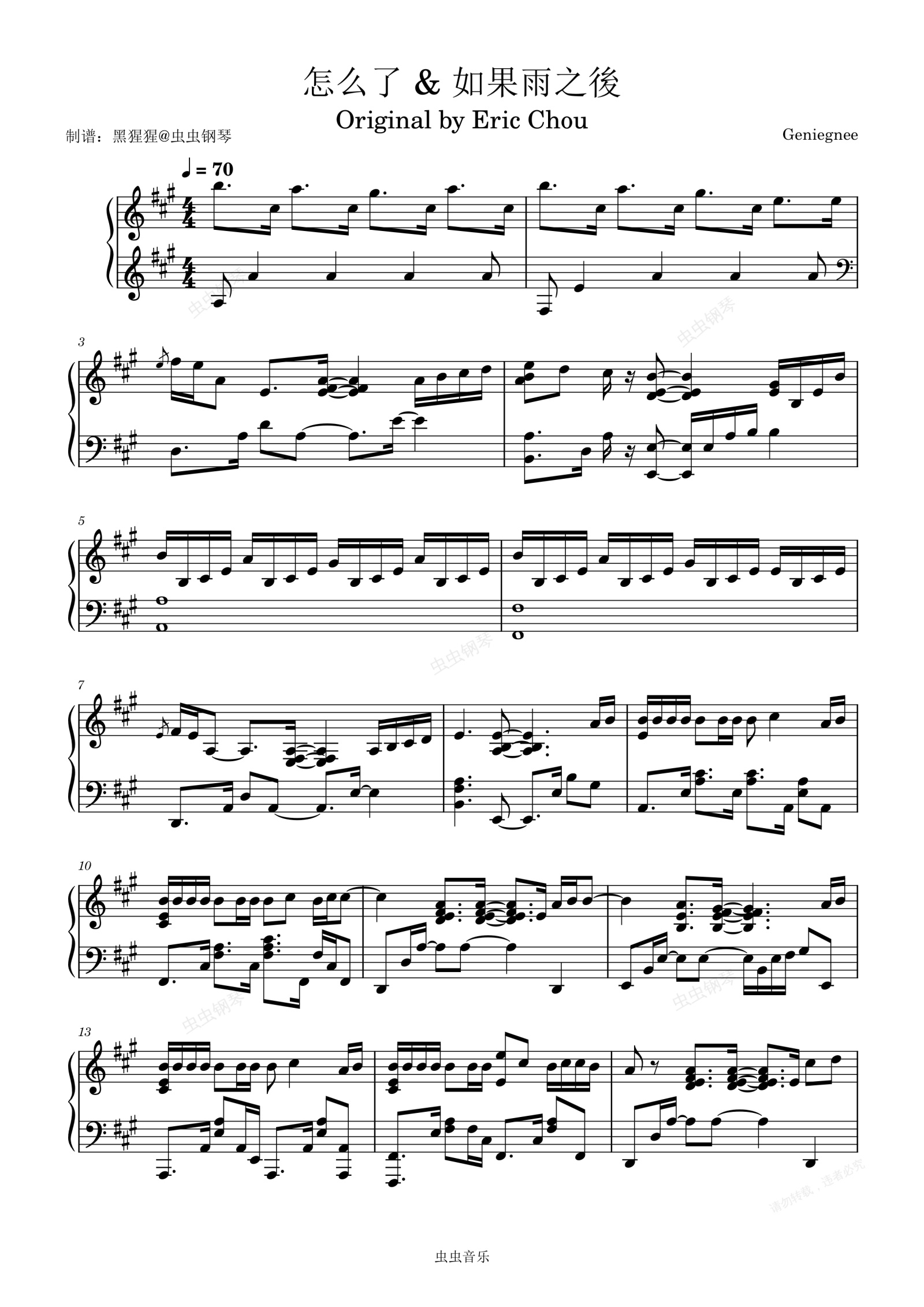 钢琴谱:周兴哲-A调 《如果雨之后》