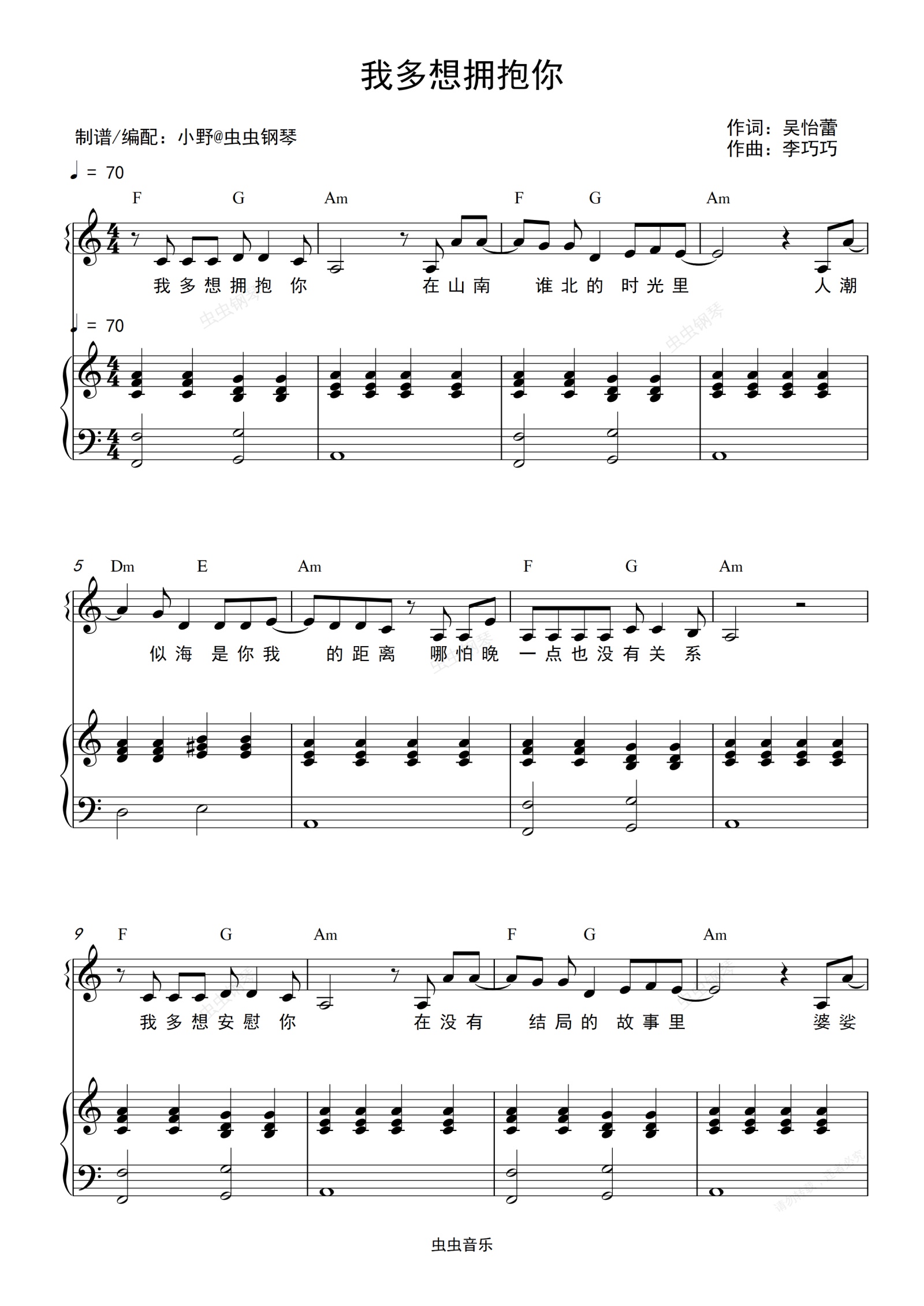 钢琴谱:我多想拥抱你(和弦弹唱版)