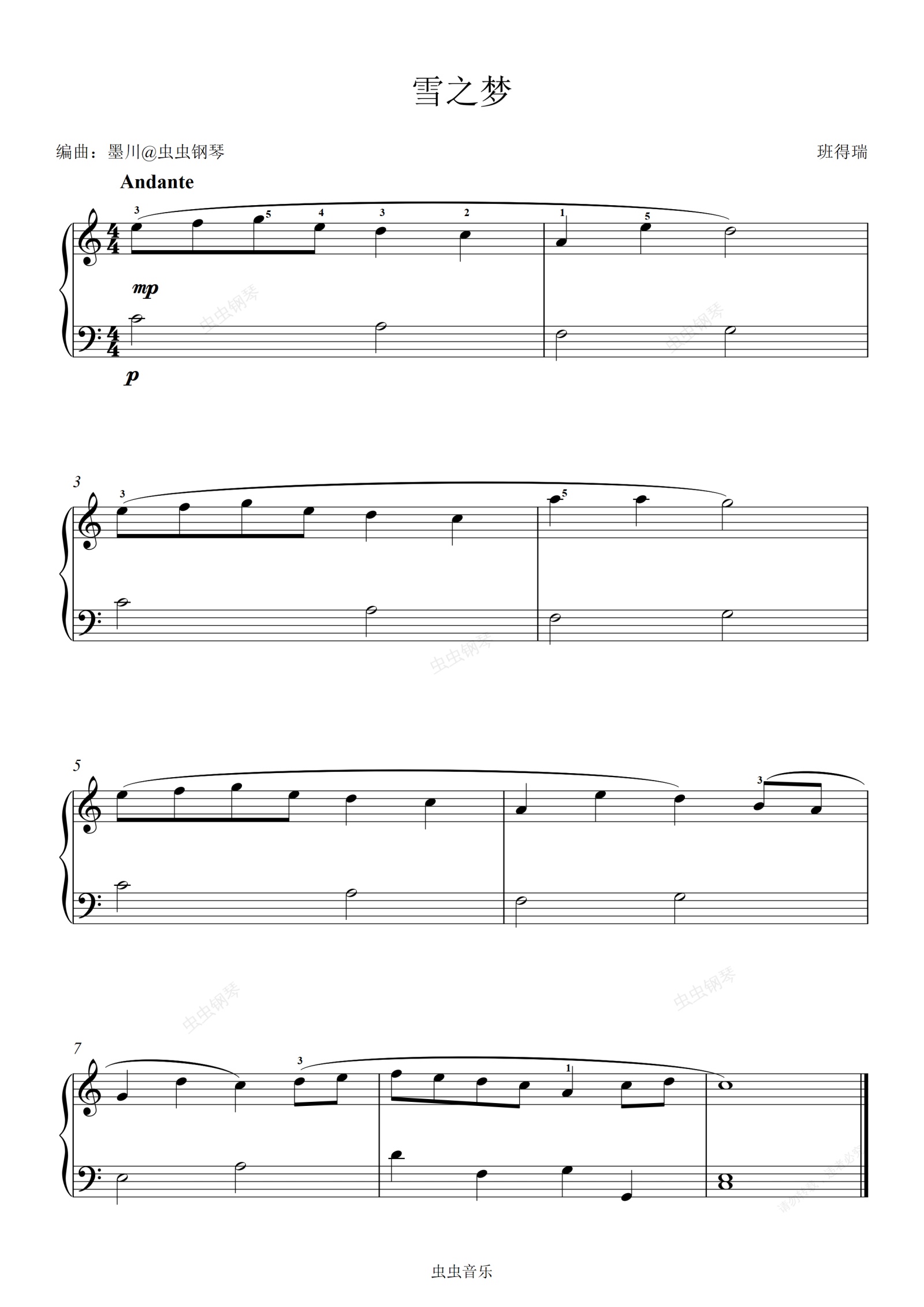 钢琴谱:初级钢琴曲—雪之梦—班得瑞