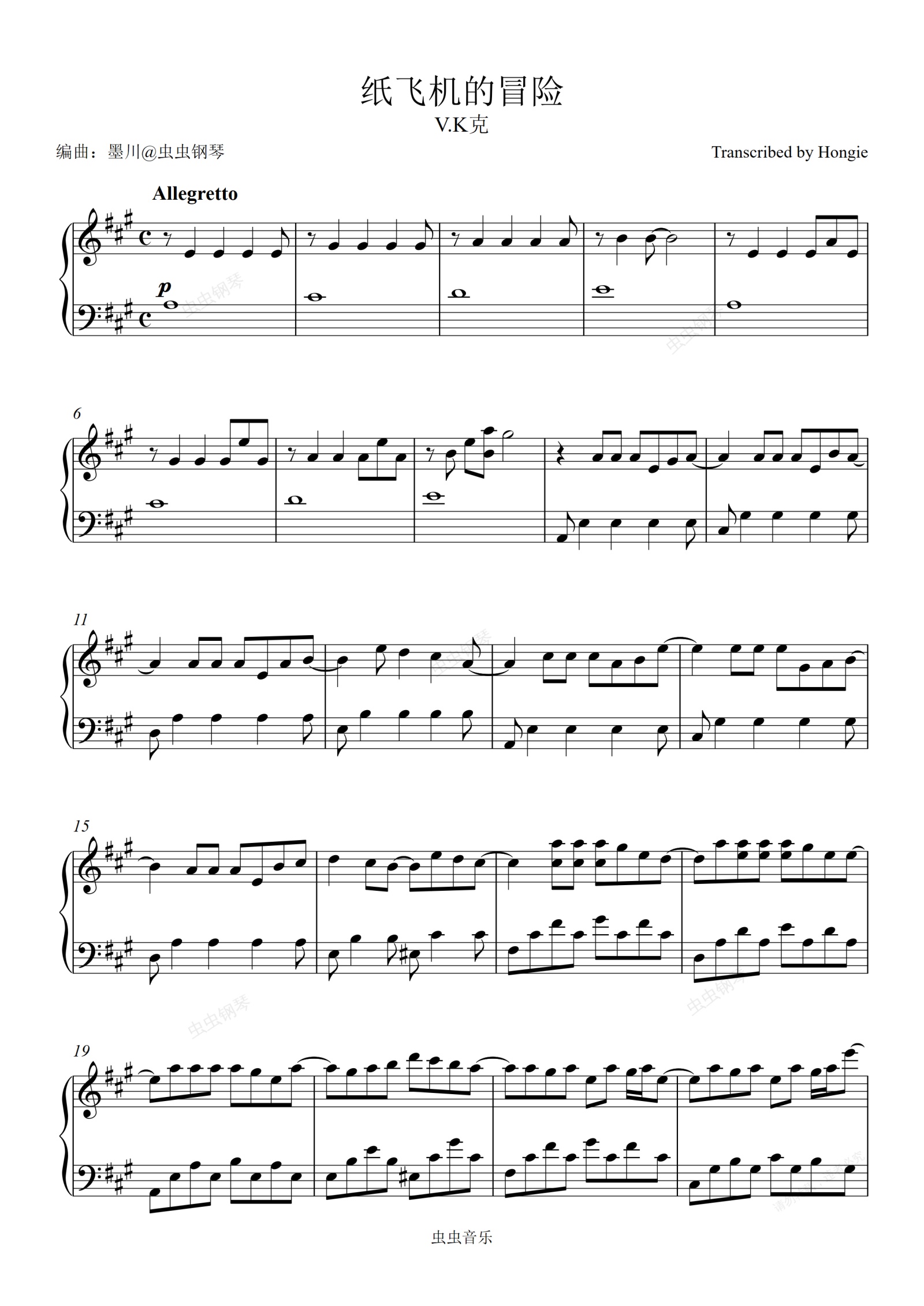 钢琴谱:纸飞机的冒险—V.K克—A调原版