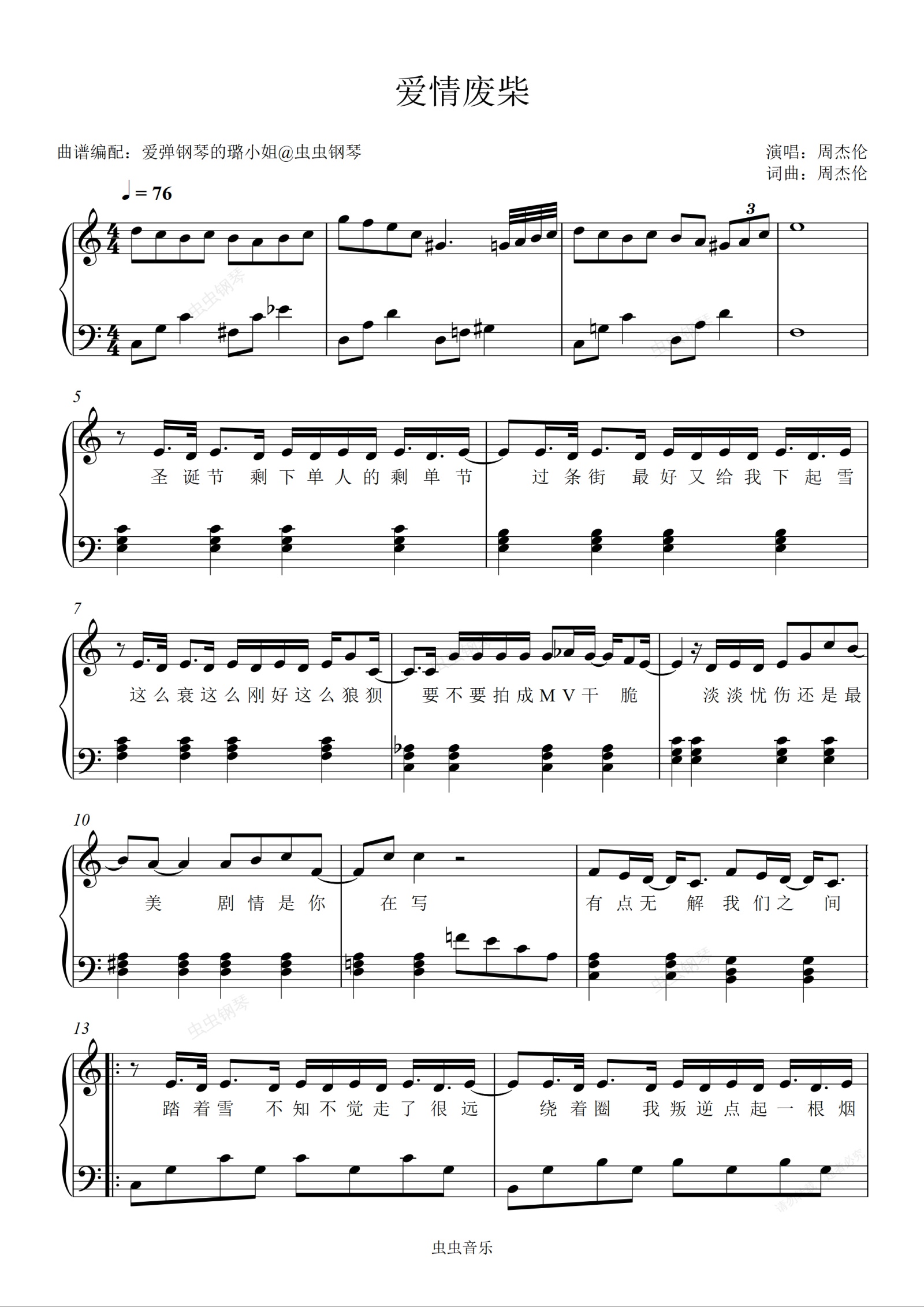 钢琴谱:爱情废柴 - C调简单版 - 附歌词