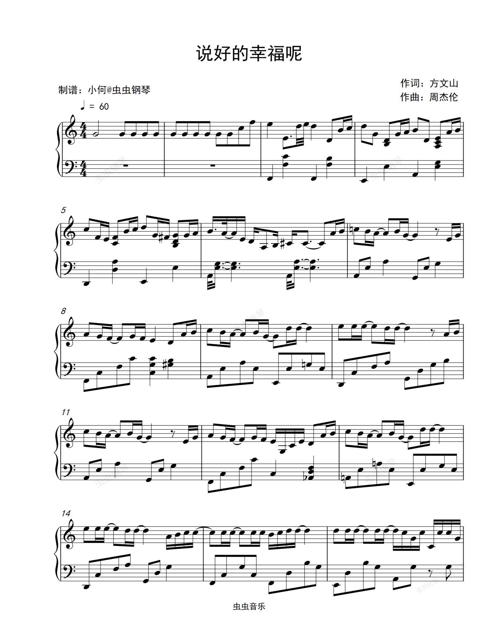 钢琴谱:说好的幸福呢-周杰伦-独奏版-EOP教学曲