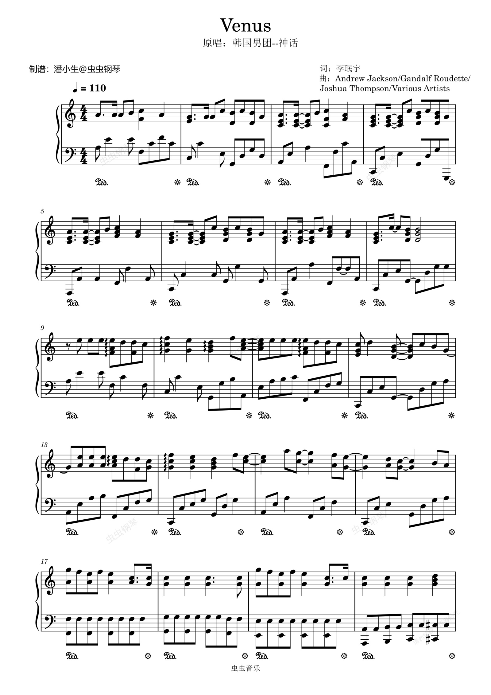 钢琴谱:Venus(维纳斯),韩国男团神话,C大调,独奏钢琴谱