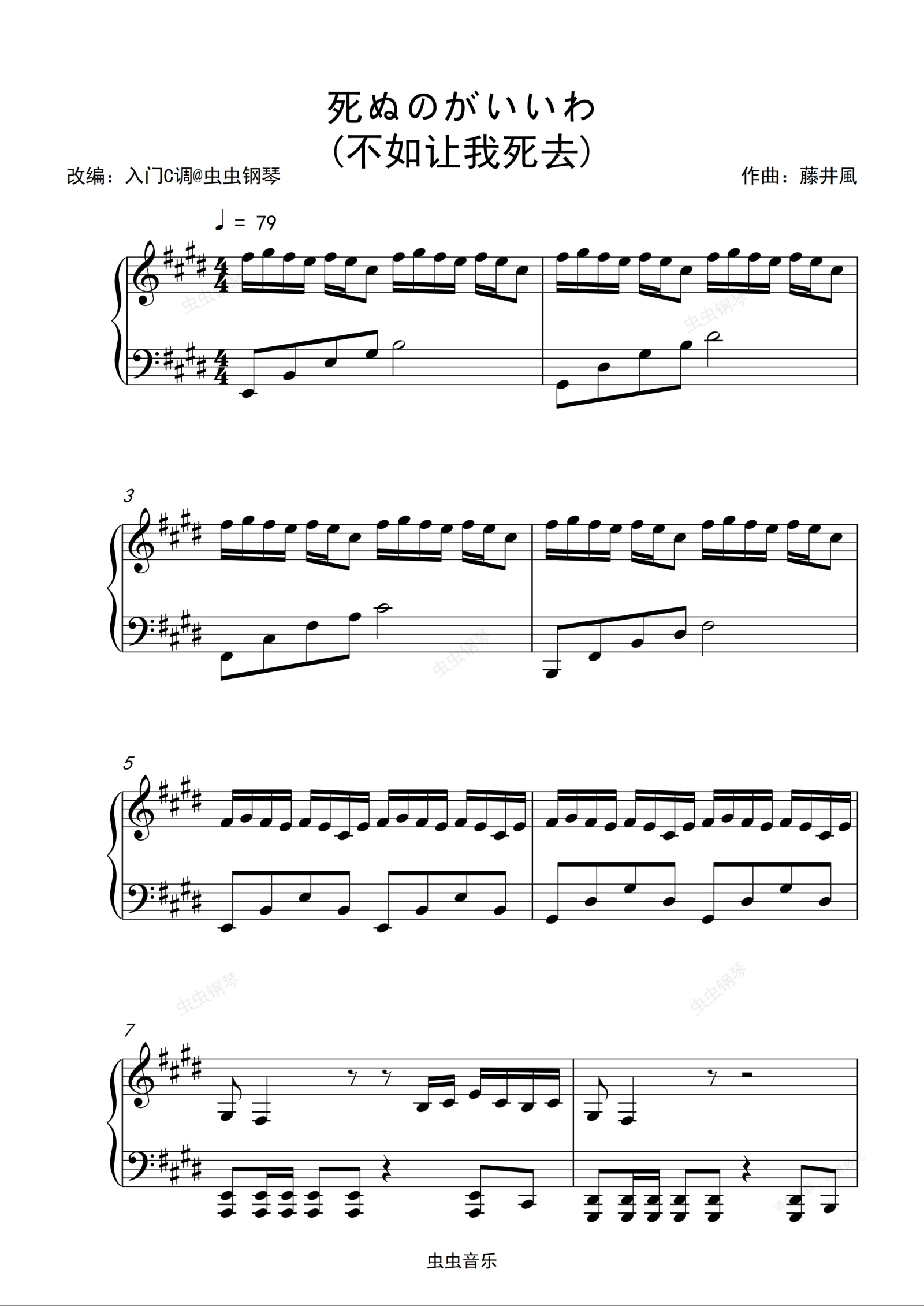 钢琴谱:藤井風《死ぬのがいいわ》 (不如让我死去)原调版
