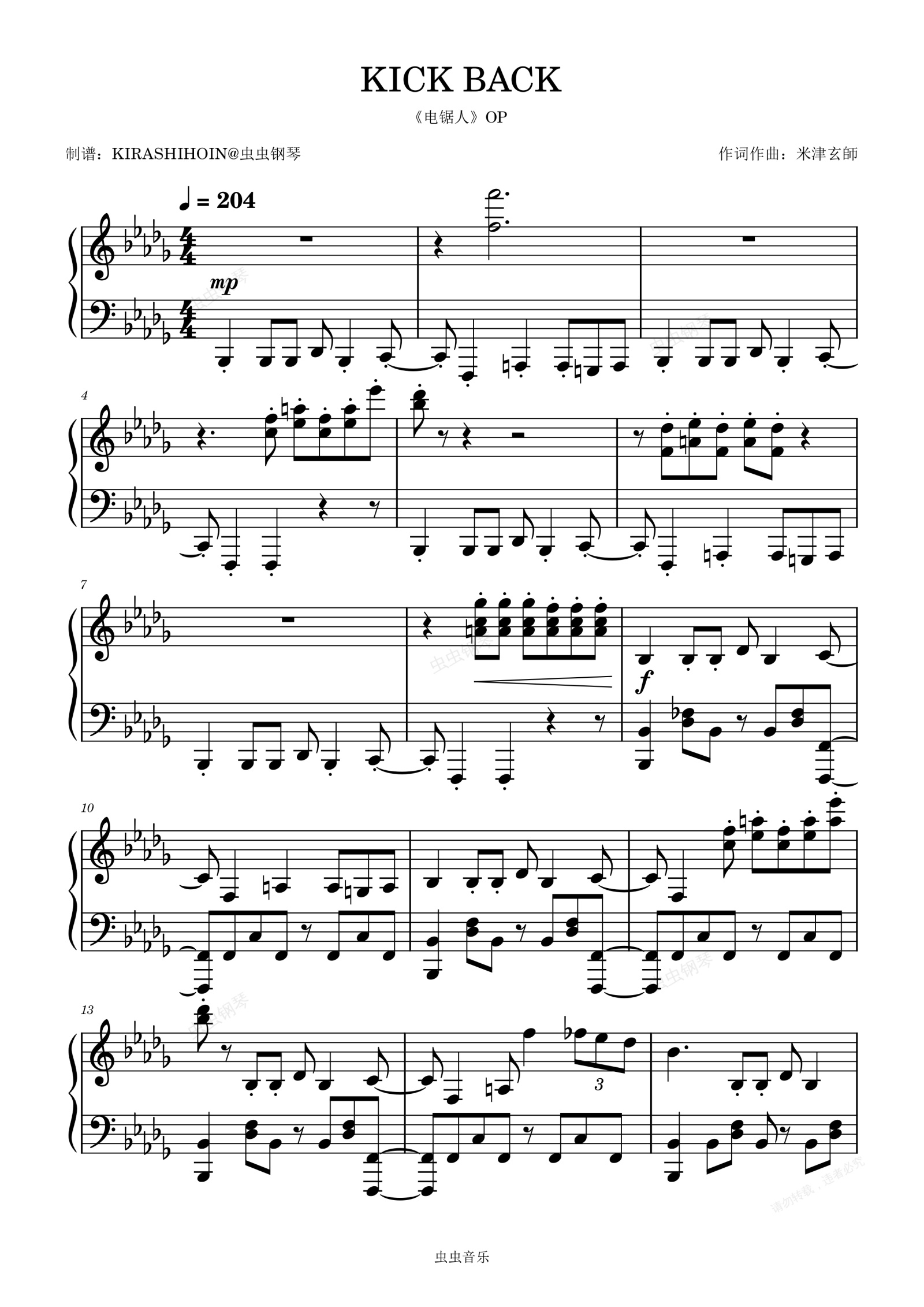 钢琴谱:KICK BACK(《电锯人》OP/片头曲)- 米津玄师