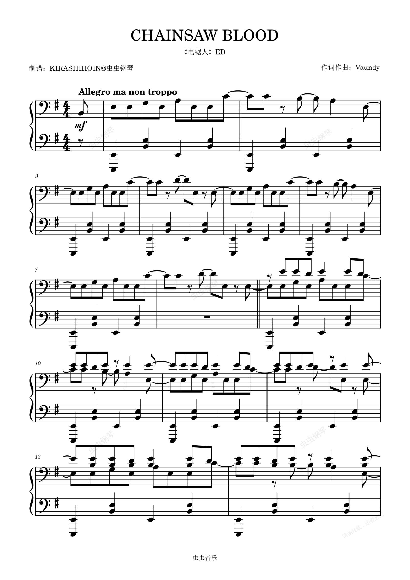 钢琴谱:CHAINSAW BLOOD(《电锯人》ED/片尾曲)- Vaundy