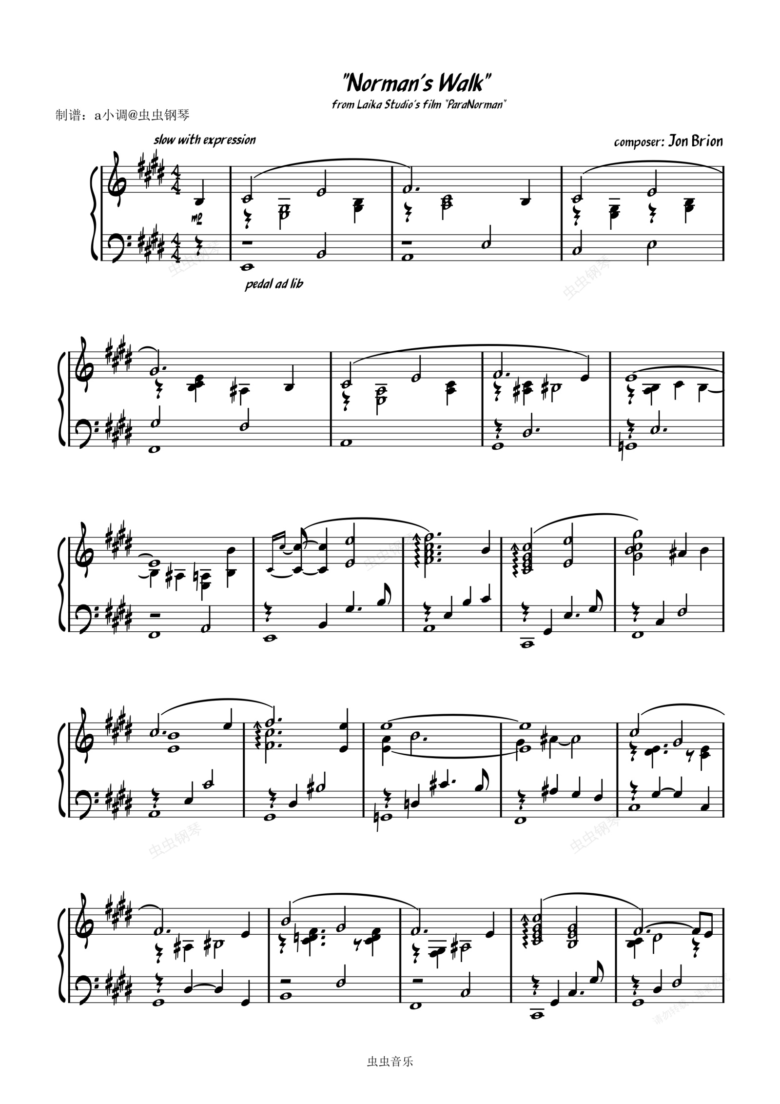 钢琴谱:Norman's Walk - Jon Brion