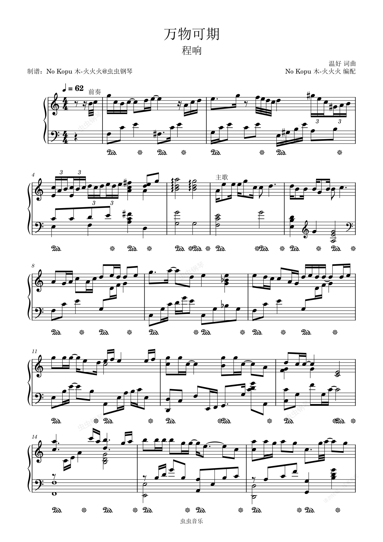 钢琴谱:精编扒谱《万物可期》C调-程响