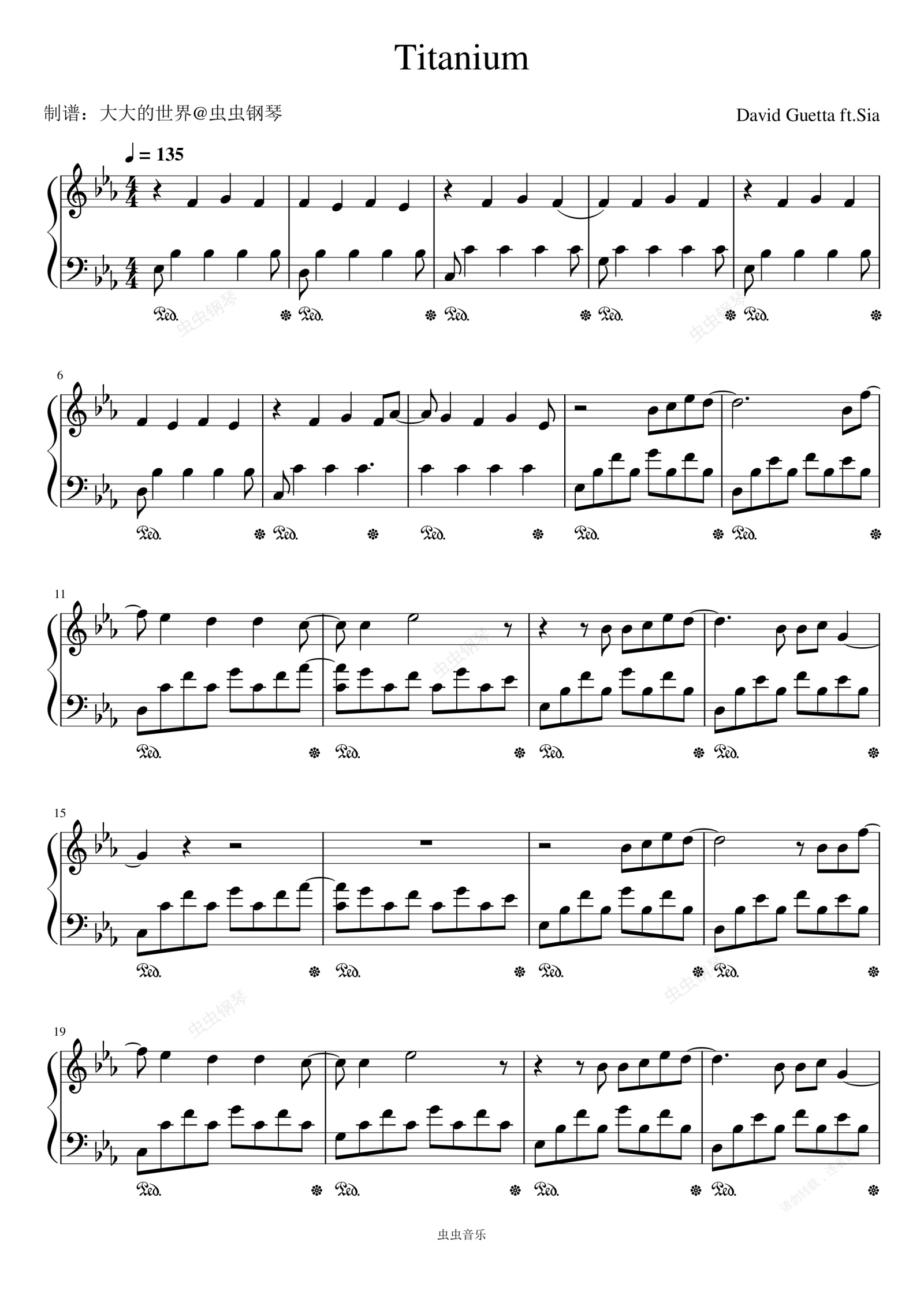 钢琴谱:Titanium - David Guetta (大卫.格塔)/Sia (希雅)