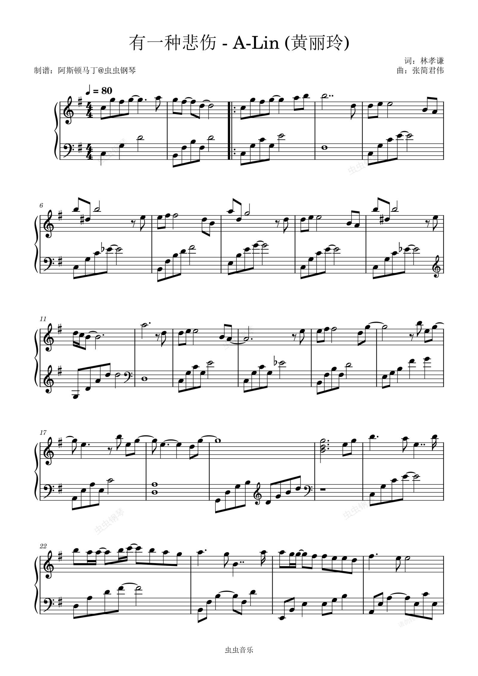 钢琴谱:有一种悲伤 - A-Lin (黄丽玲) 独奏