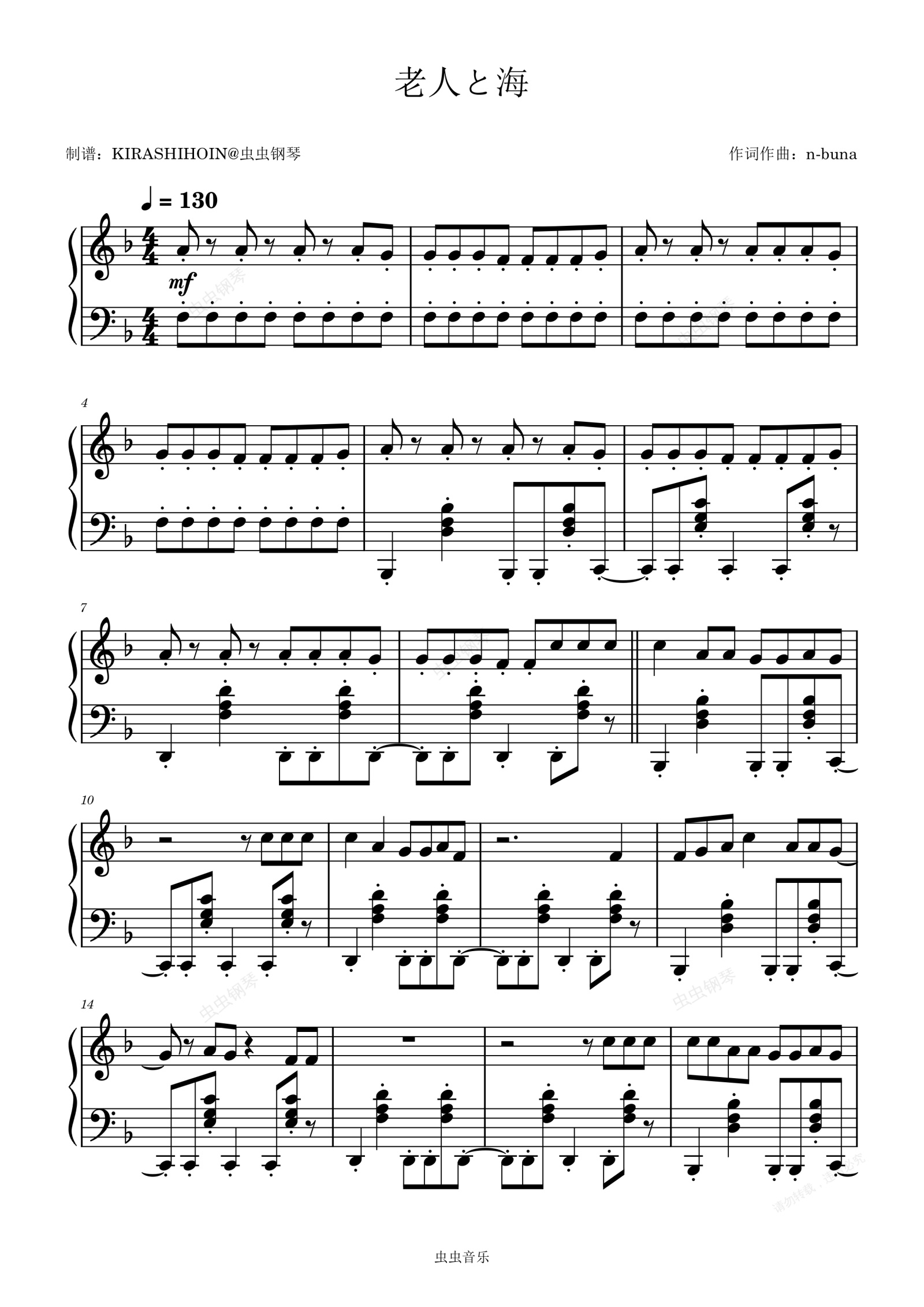 钢琴谱:老人と海 - ヨルシカ