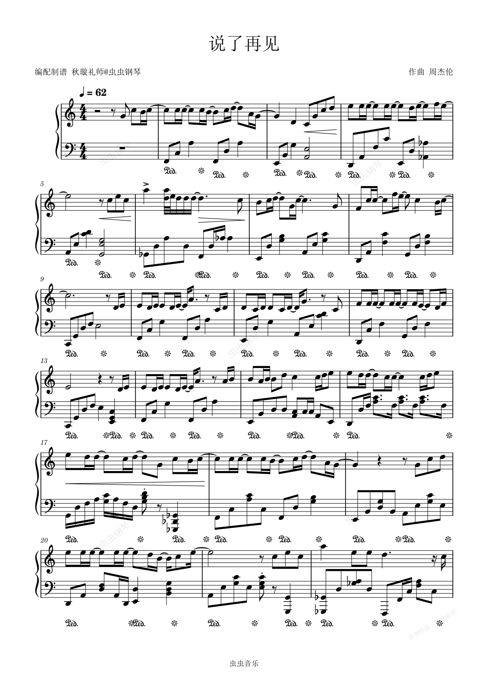 钢琴谱:C调[极限还原]说了再见