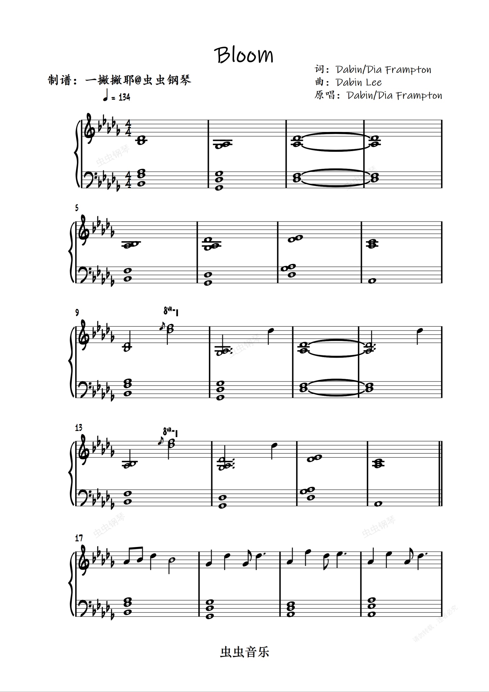 钢琴谱:Bloom【弹唱伴奏谱】Dabin / Dia Frampton「一撇撇耶」