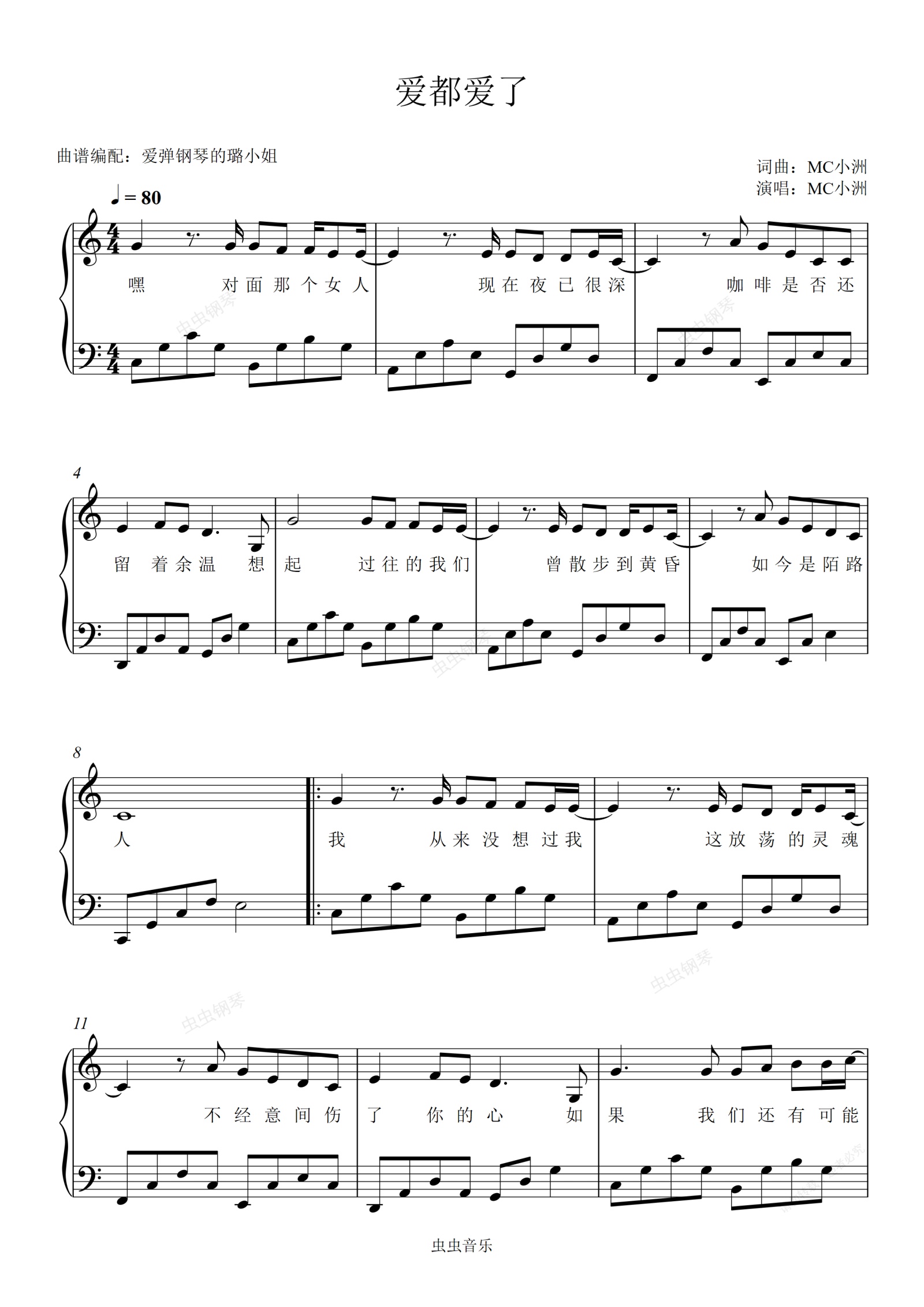 钢琴谱:爱都爱了 - C调简单版 - 附歌词