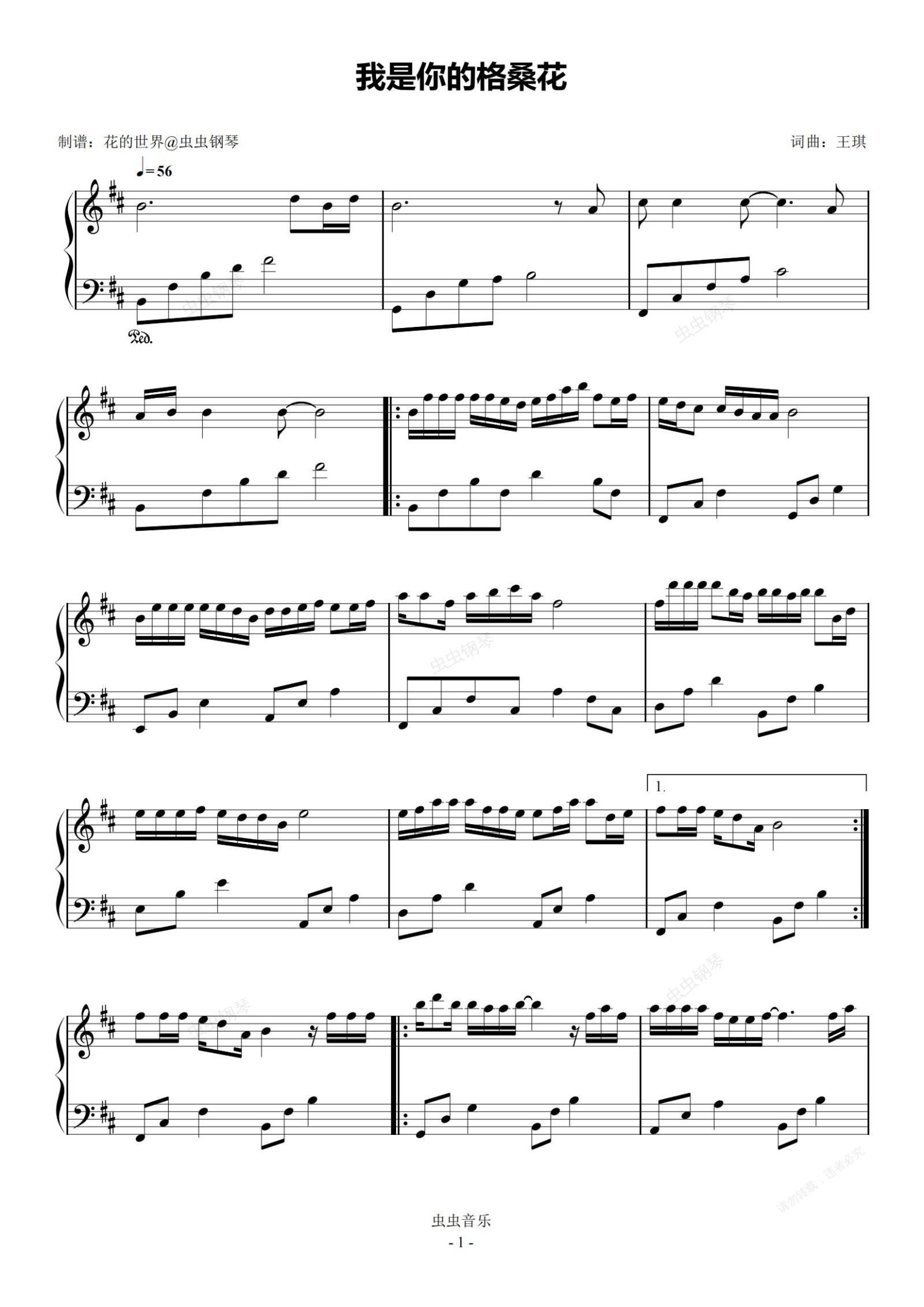 钢琴谱:我是你的格桑花 原调简易版 王琪
