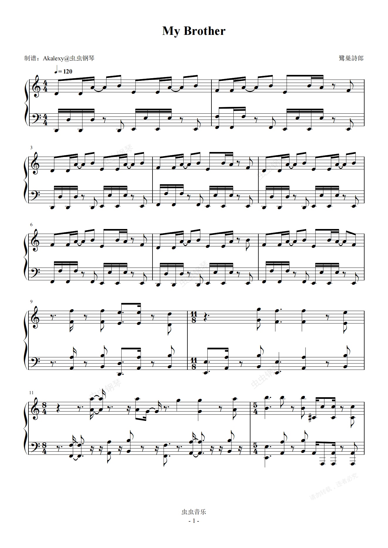 钢琴谱:剑风传奇【My Brother】