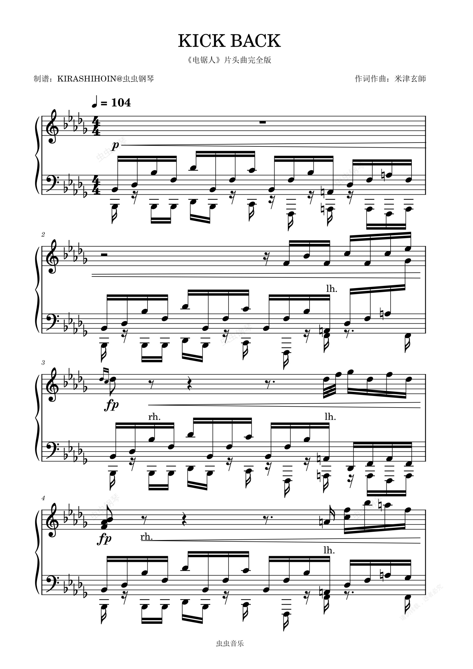 钢琴谱:KICK BACK(《电锯人》片头曲完全版)- 米津玄师