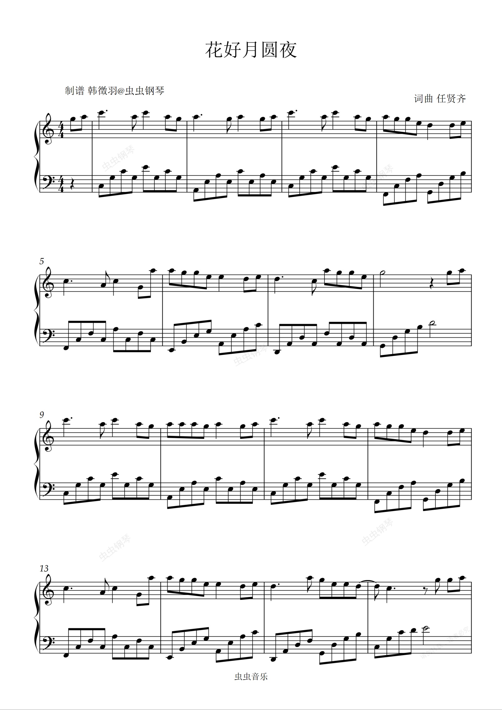 钢琴谱:花好月圆夜 任贤齐 杨千嬅 C调