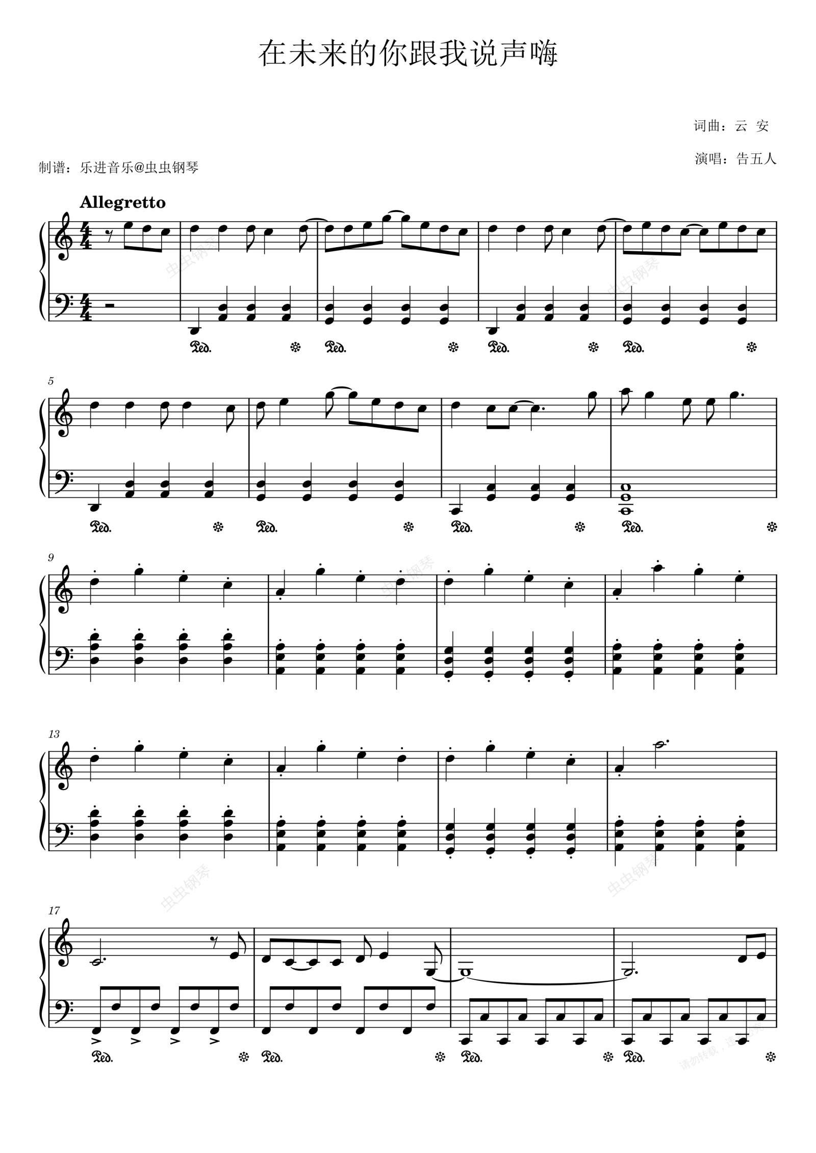 钢琴谱:在未来的你跟我说声嗨 C调无升降