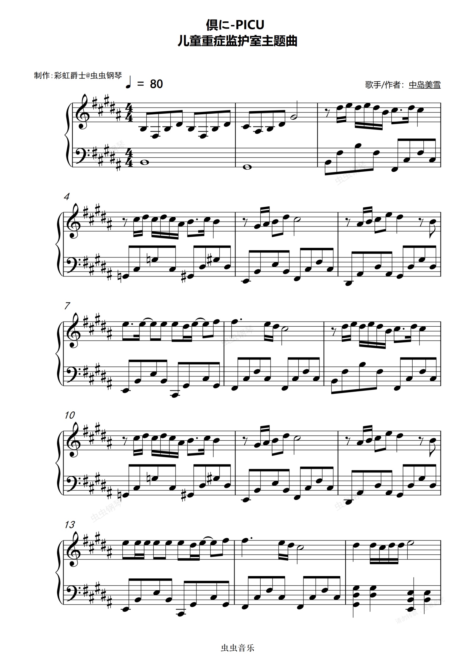 钢琴谱:倶に-PICU 儿童重症监护室主题曲 中岛美雪