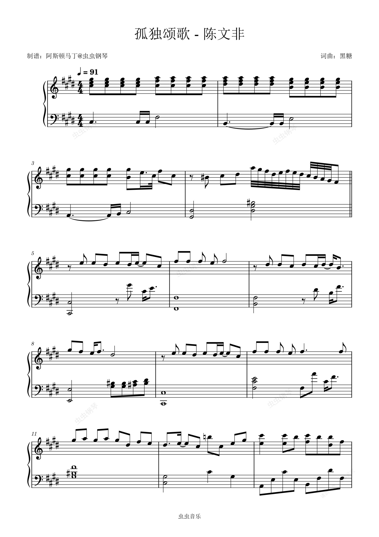 钢琴谱:孤独颂歌 - 陈文非【独奏】