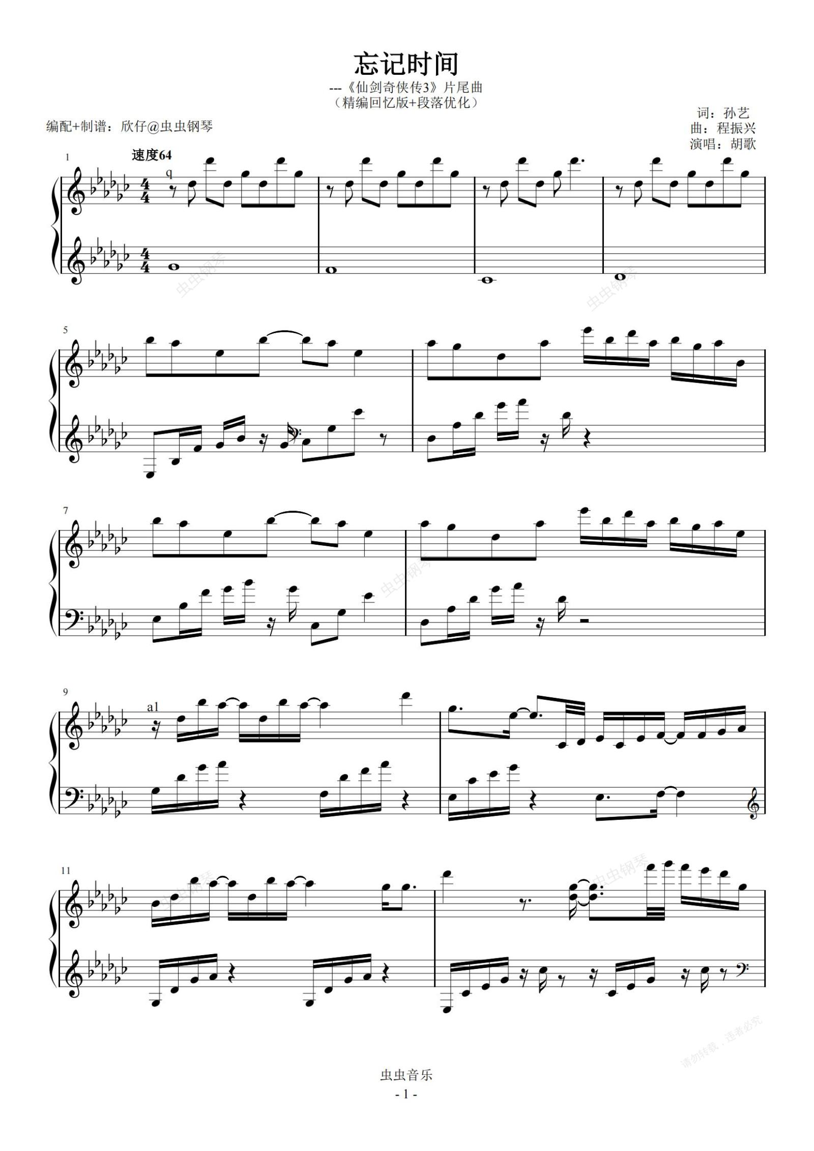 钢琴谱:胡歌-降G《忘记时间》(精编回忆版+段落优化)