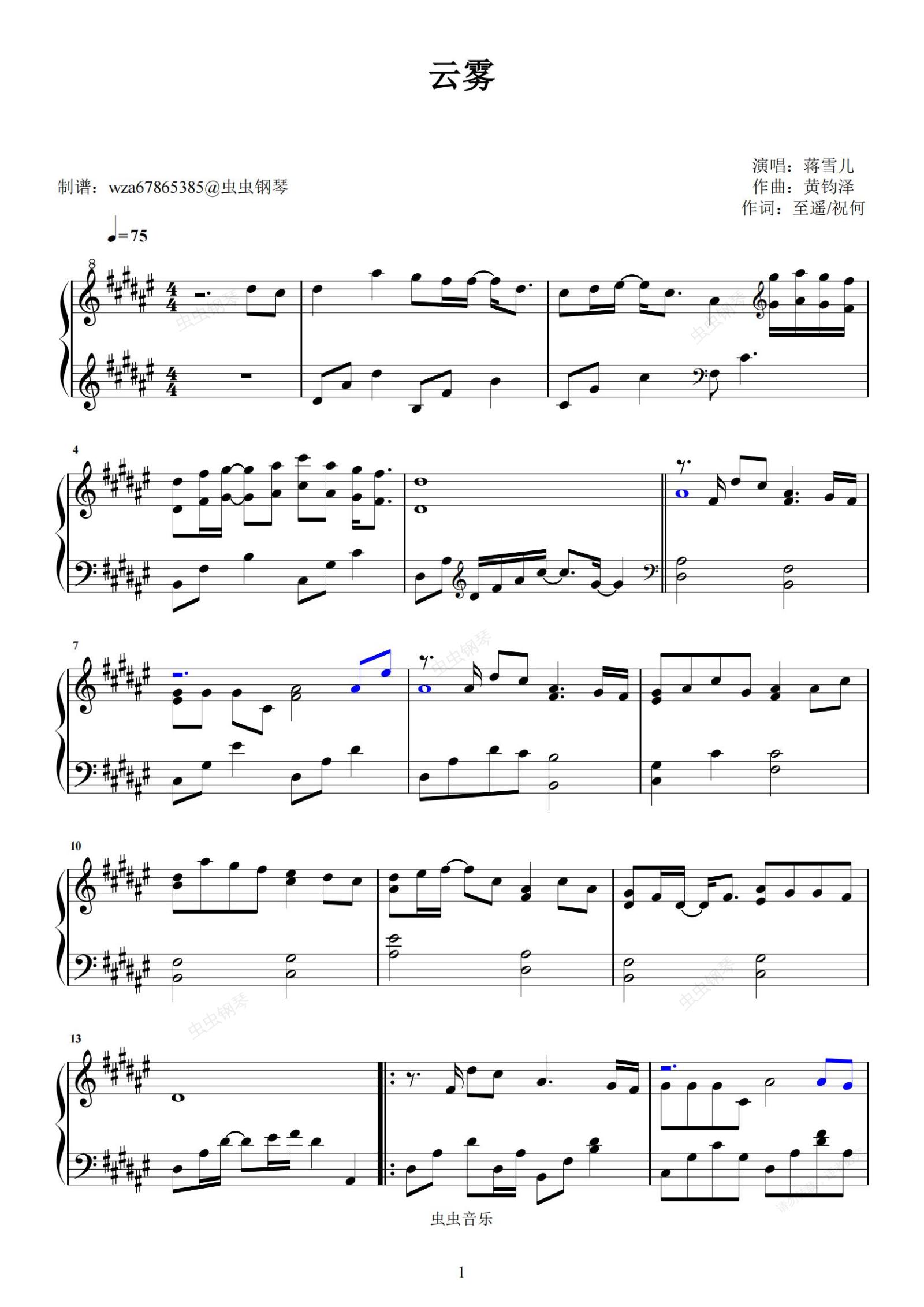 钢琴谱:云雾