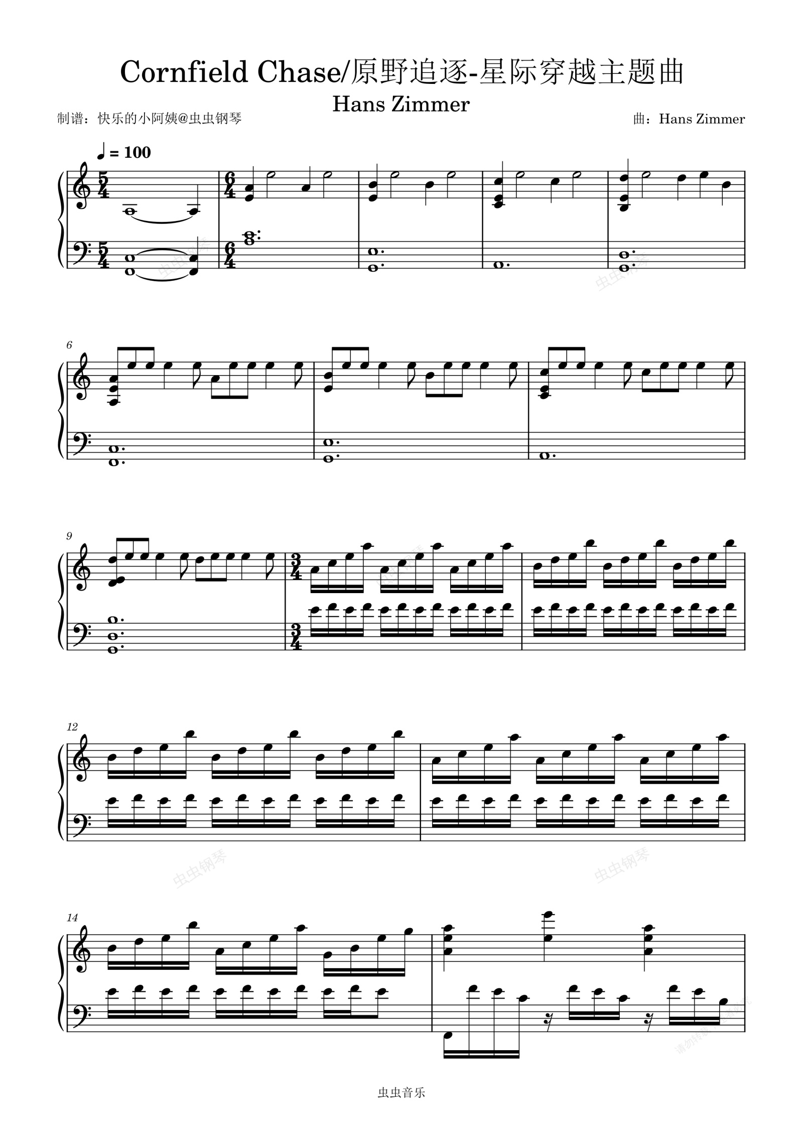 钢琴谱:Cornfield Chase-C调《星际穿越》Hans Zimmer