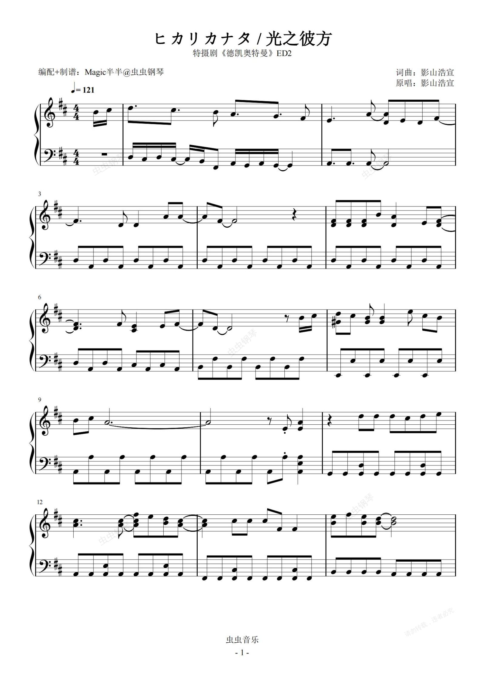 钢琴谱:<德凯奥特曼>ED2:光之彼方