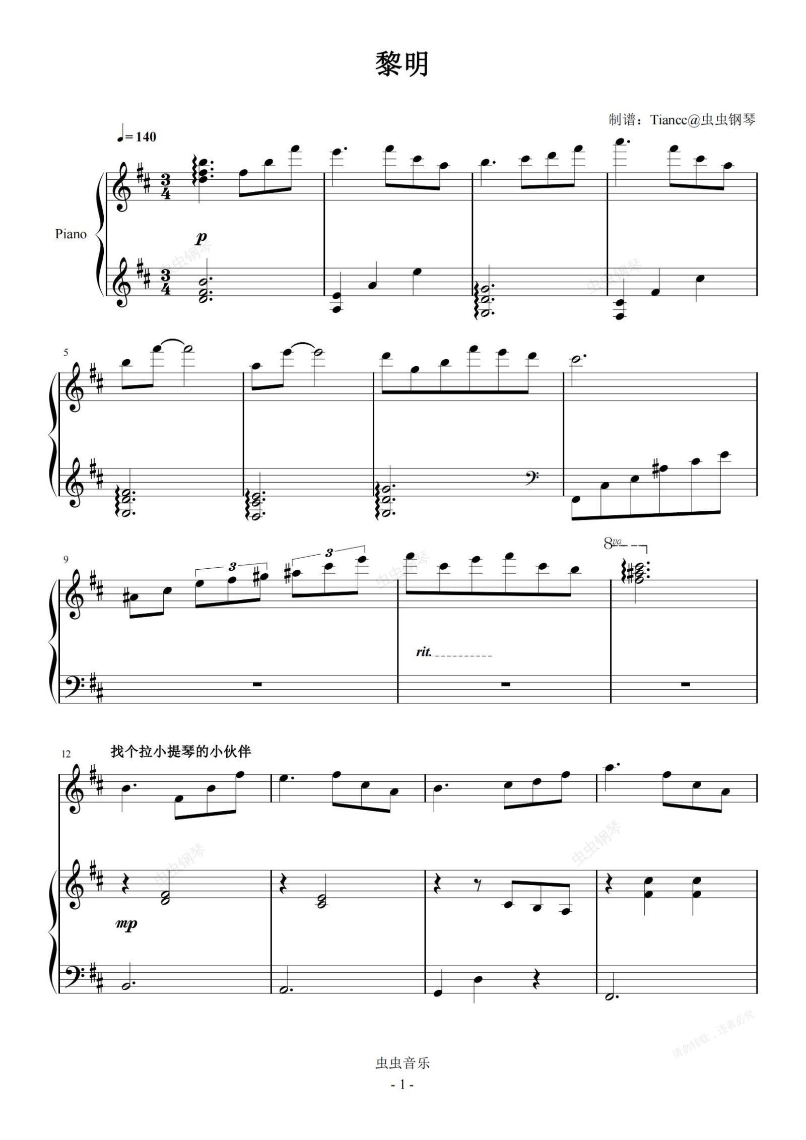 钢琴谱:《黎明》创之轨迹插曲,钢琴+小提琴,疫情赶紧过去吧