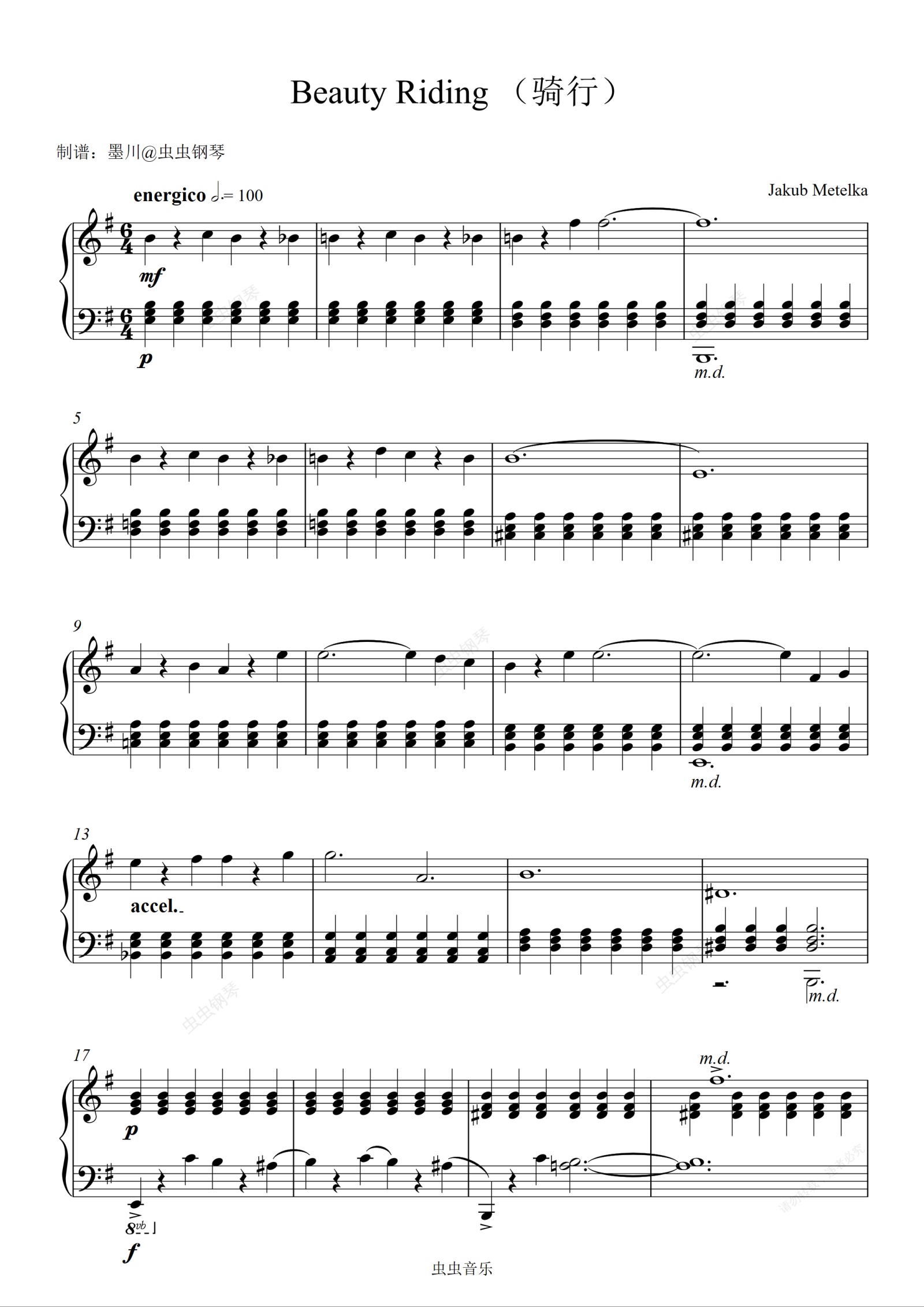 钢琴谱:中级钢琴曲—Beauty Riding (骑行)