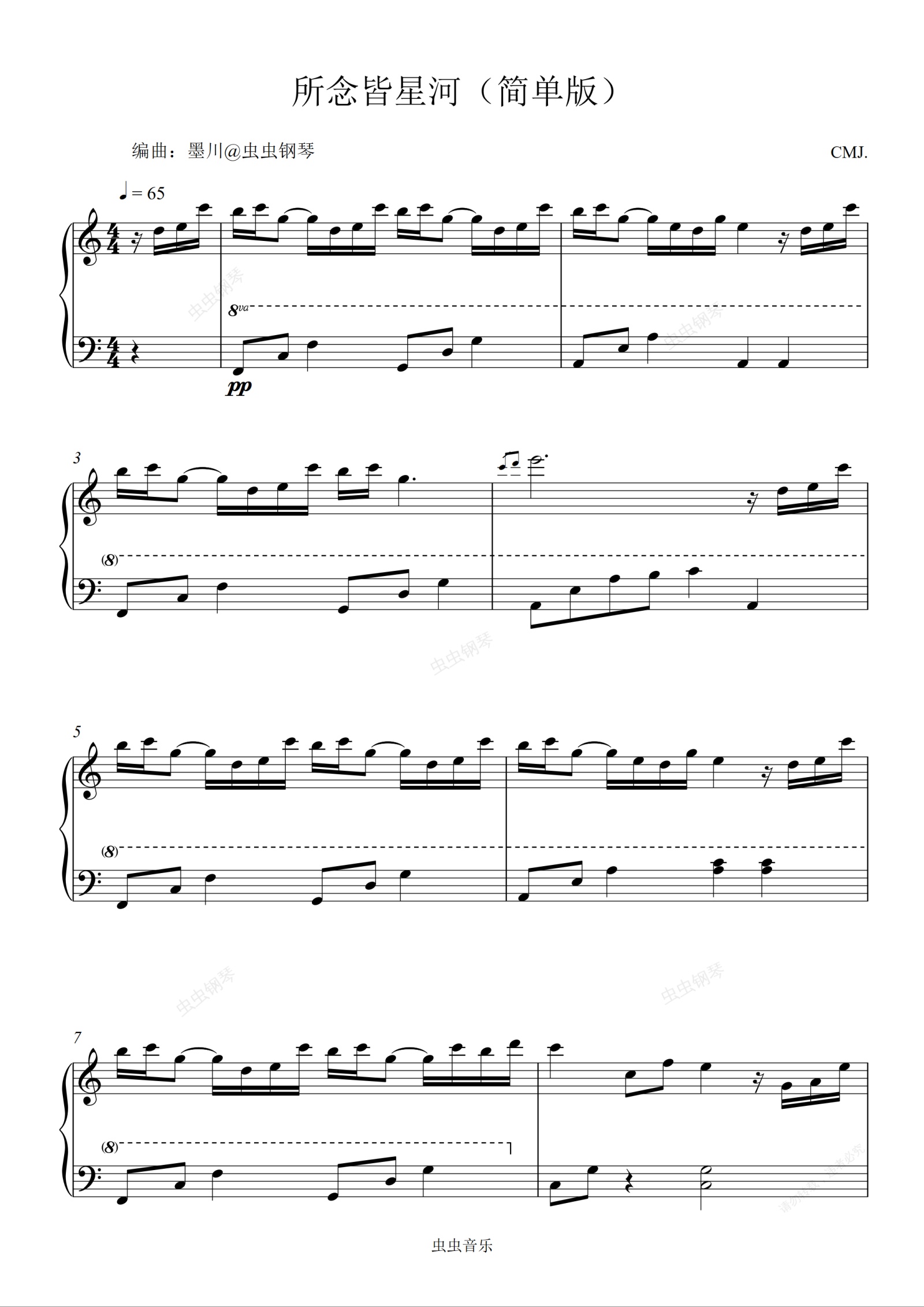 钢琴谱:所念皆星河—CMJ.—C调简易版