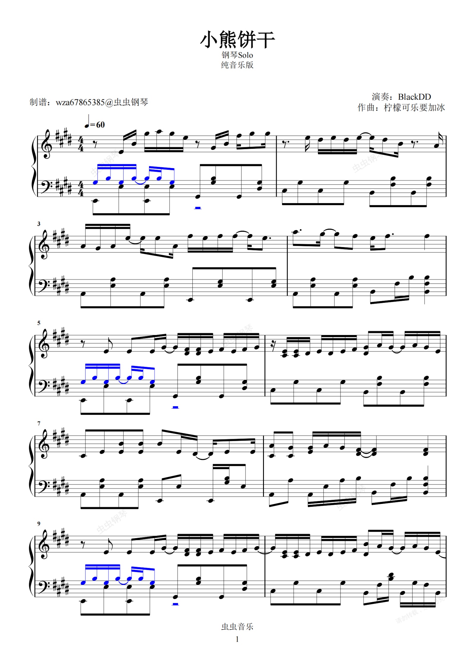 钢琴谱:小熊饼干 (钢琴solo) - BlackDD
