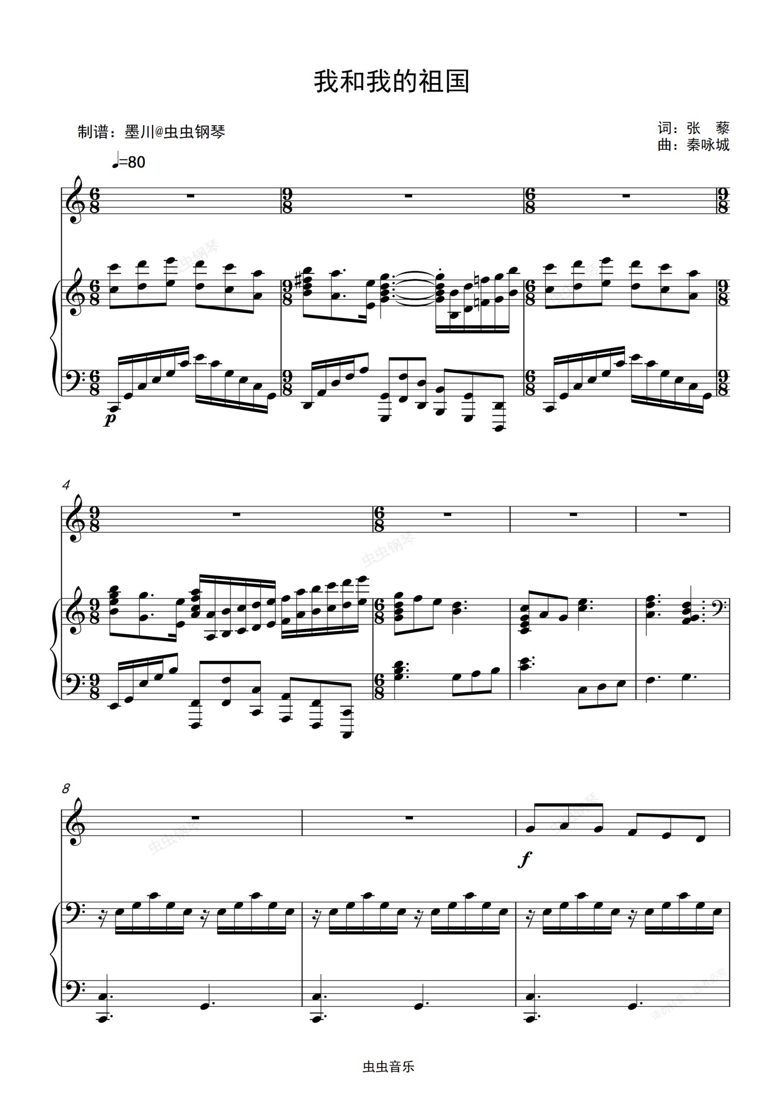 钢琴谱:我和我的祖国—C调原版伴奏谱