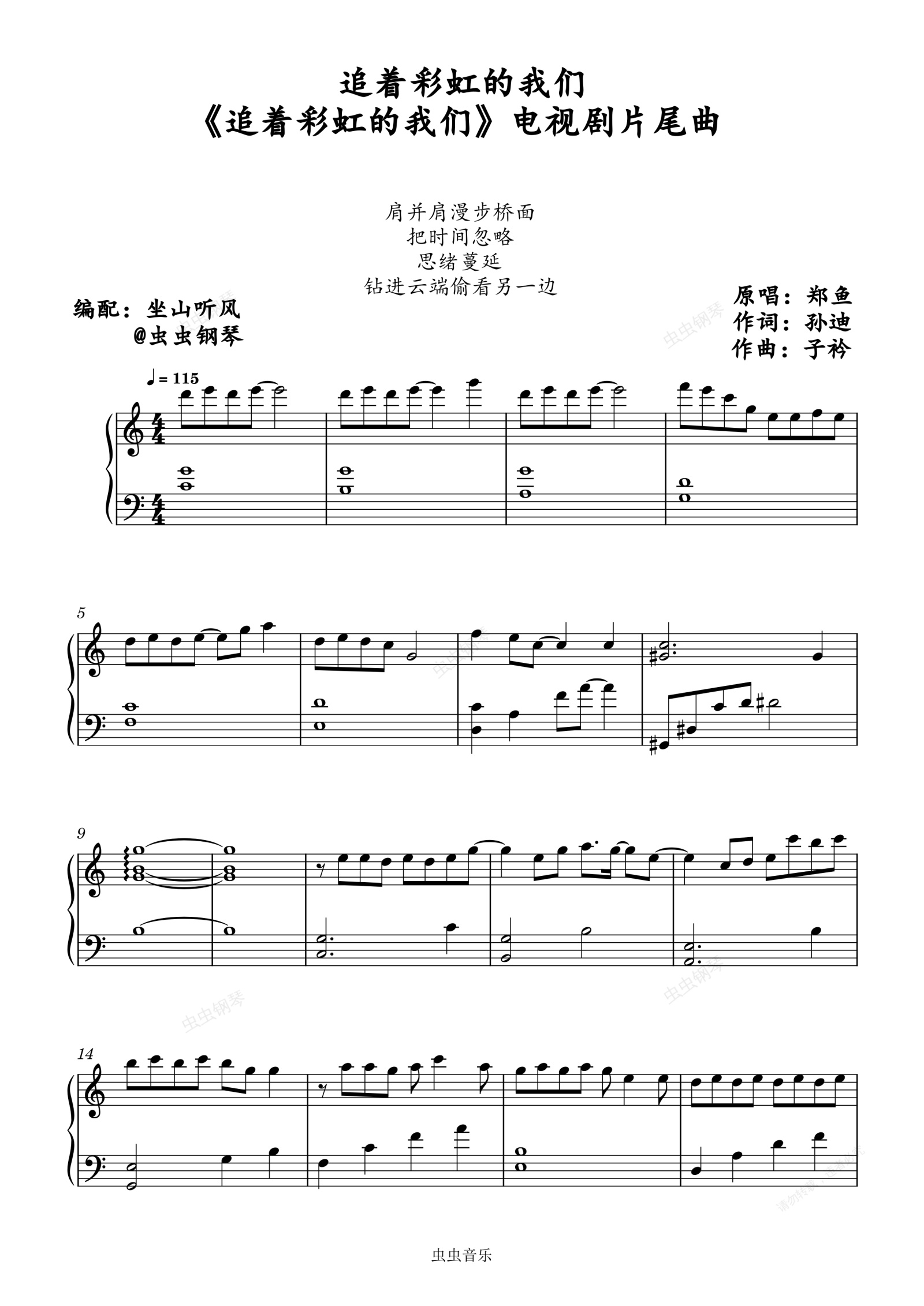 钢琴谱:追着彩虹的我们——《追着彩虹的我们》电视剧片尾曲